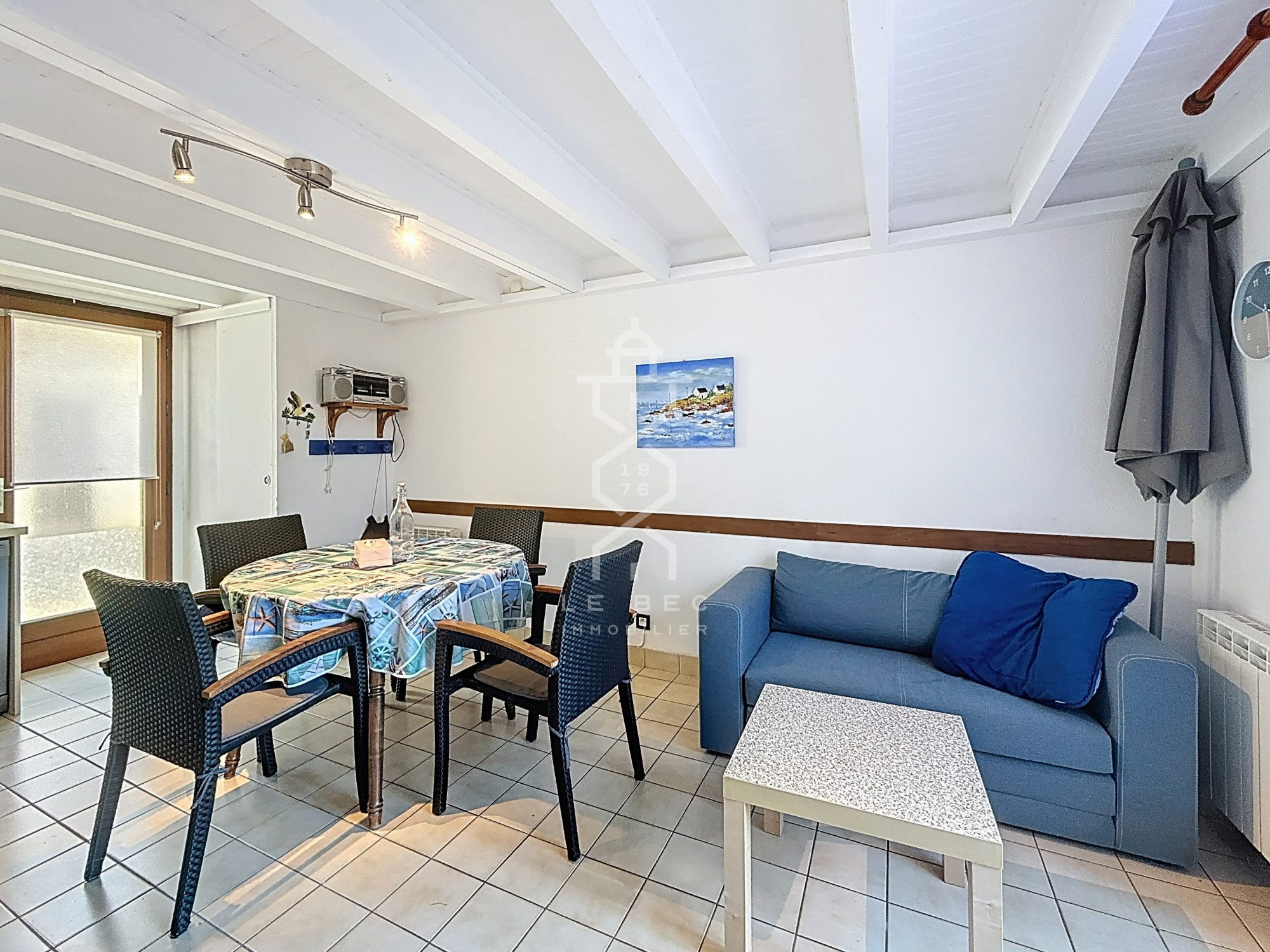 Située à quelques pas de la plage du Goërem, cette charmante maison décorée avec goût offre, dès l'entrée, une agréable pièce de vie avec une cuisine aménagée et équipée, un coin salon/salle à manger et...