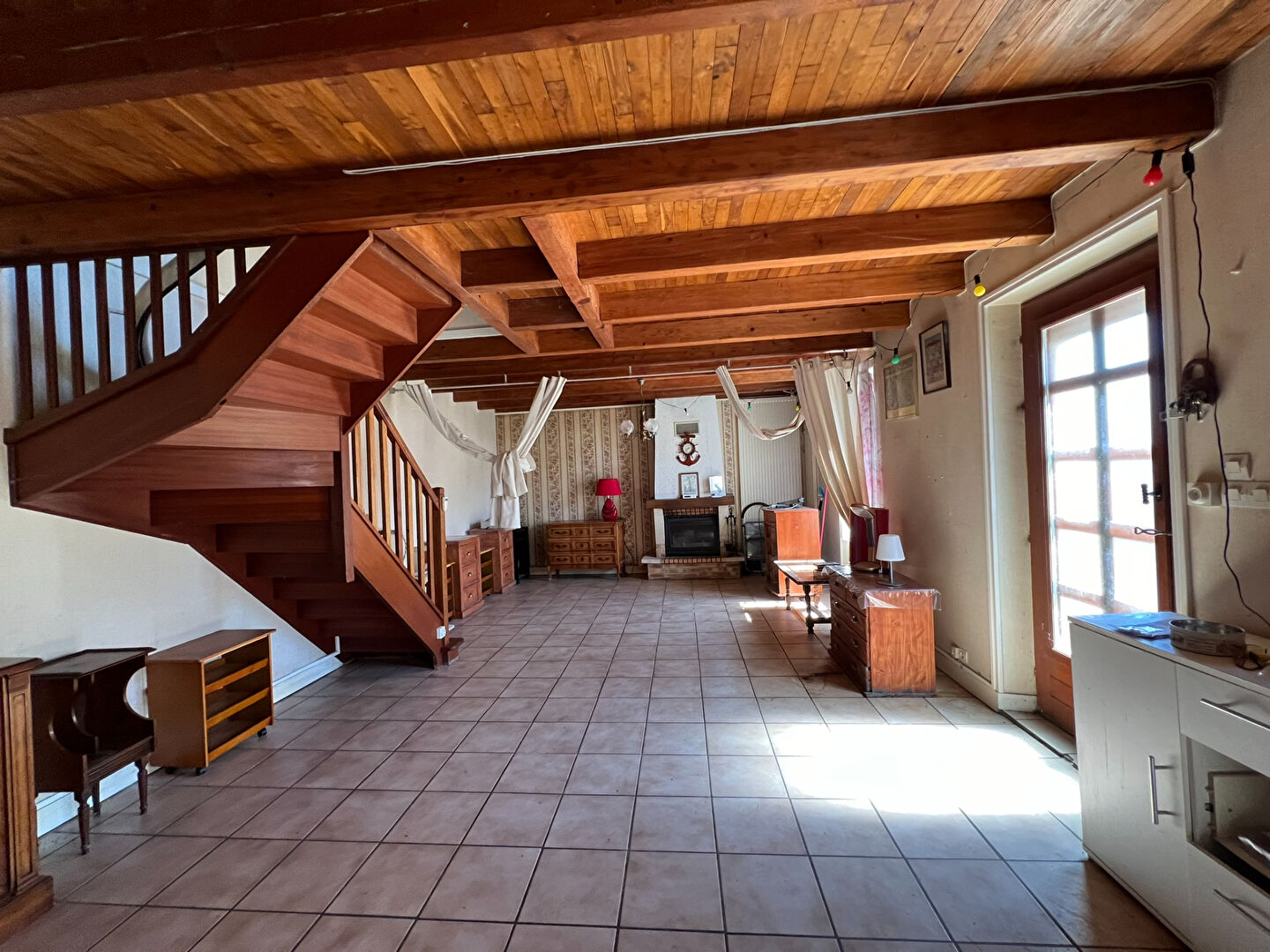 Au rez-de-chaussée, vous découvrirez un salon équipé d'un insert, une cuisine aménagée, ainsi qu'un dégagement menant à une salle d'eau avec WC et une bua...