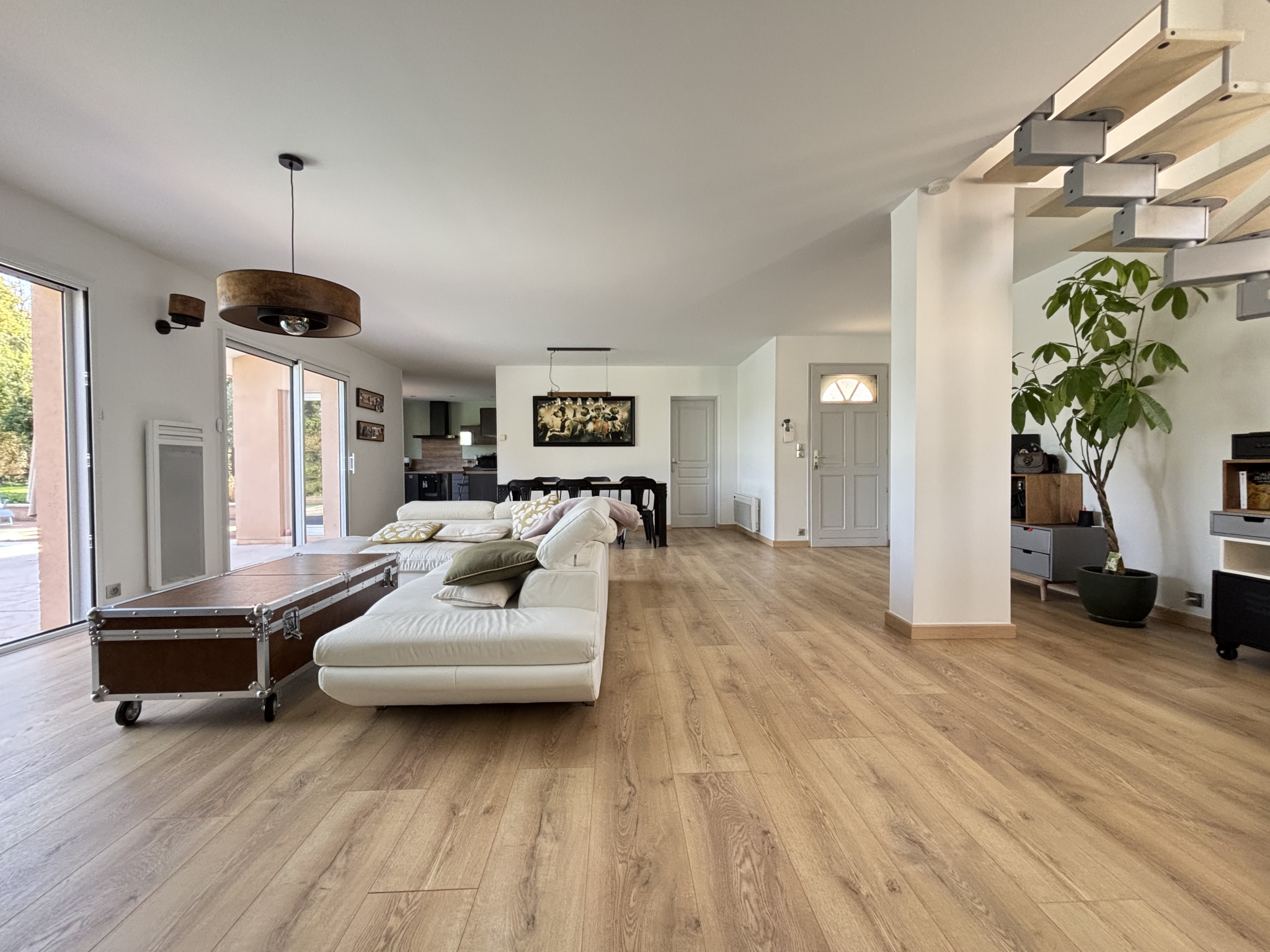 Au coeur d'un cadre naturel préservé, découvrez cette maison de plain-pied de 136 m2, extrêmement lumineuse grâce à sa conception traversante et sa double exposition. Elle offre un véritable confort de vie pour une famille à la recherche de grands espaces...