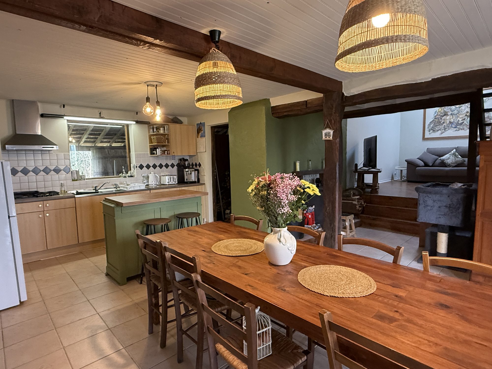 Pour les amoureux des maisons anciennes: grand couloir central, cuisine équipée, salon avec poële de masse, salle d'eau/wc, chambre (accès ja...