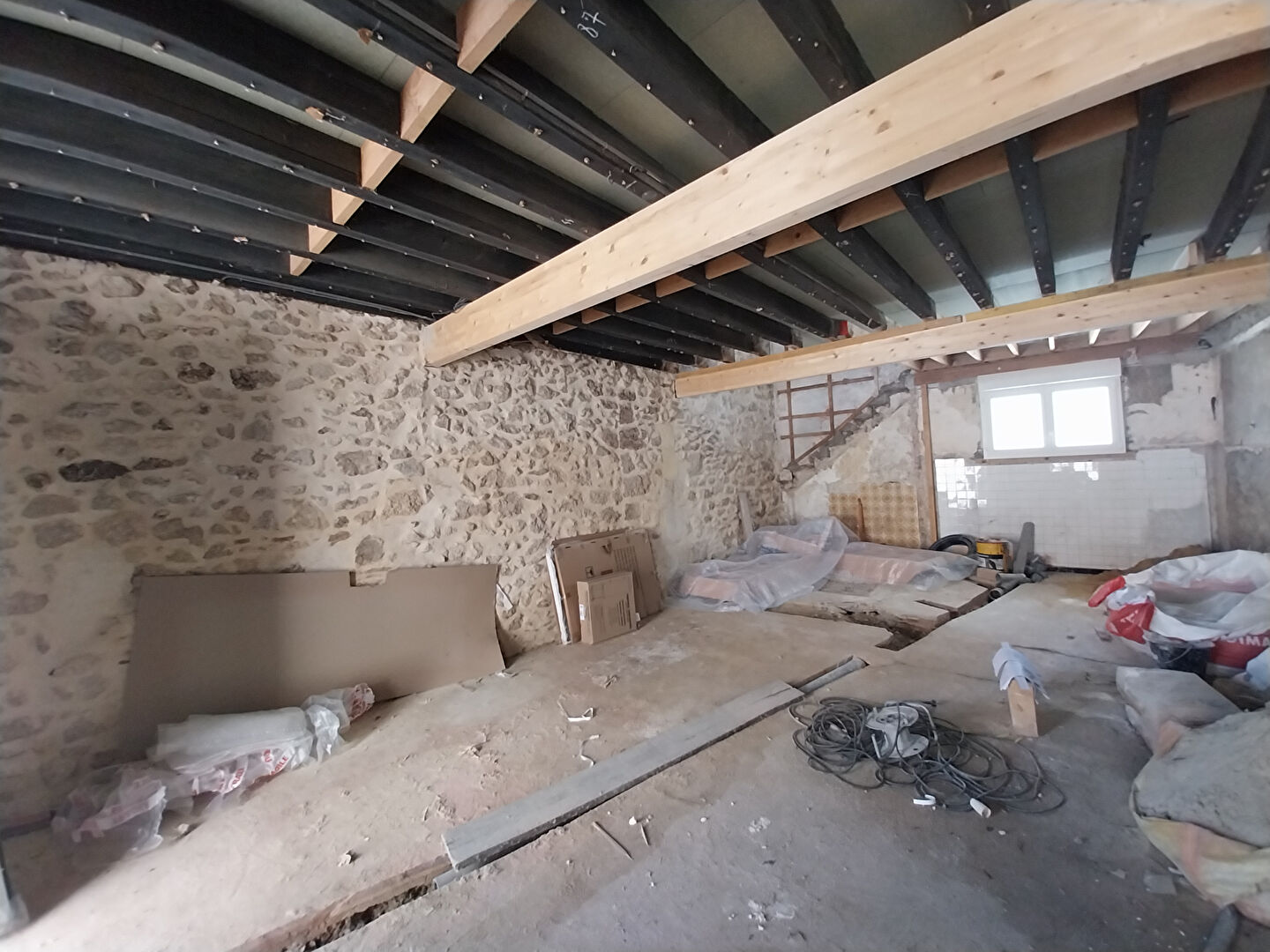 Chai en pierre d'une superficie de plus de 230 m² avec grande hauteur sous plafond.
