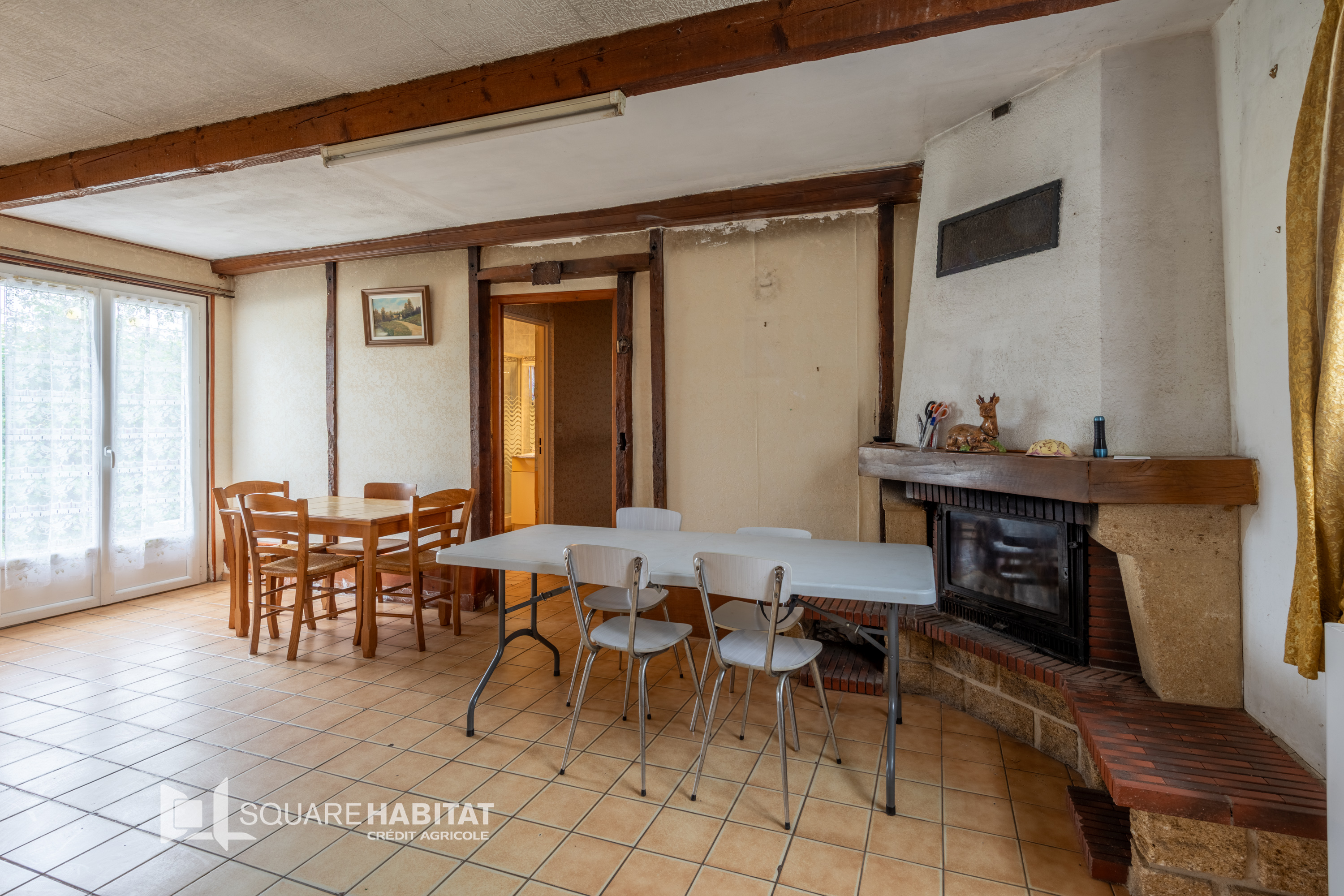 Une pièce de 32m² avec cheminée ouverte.