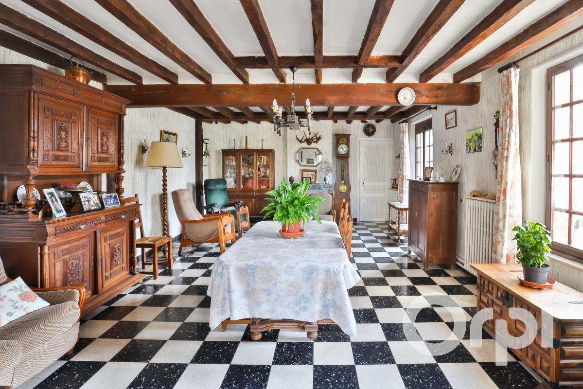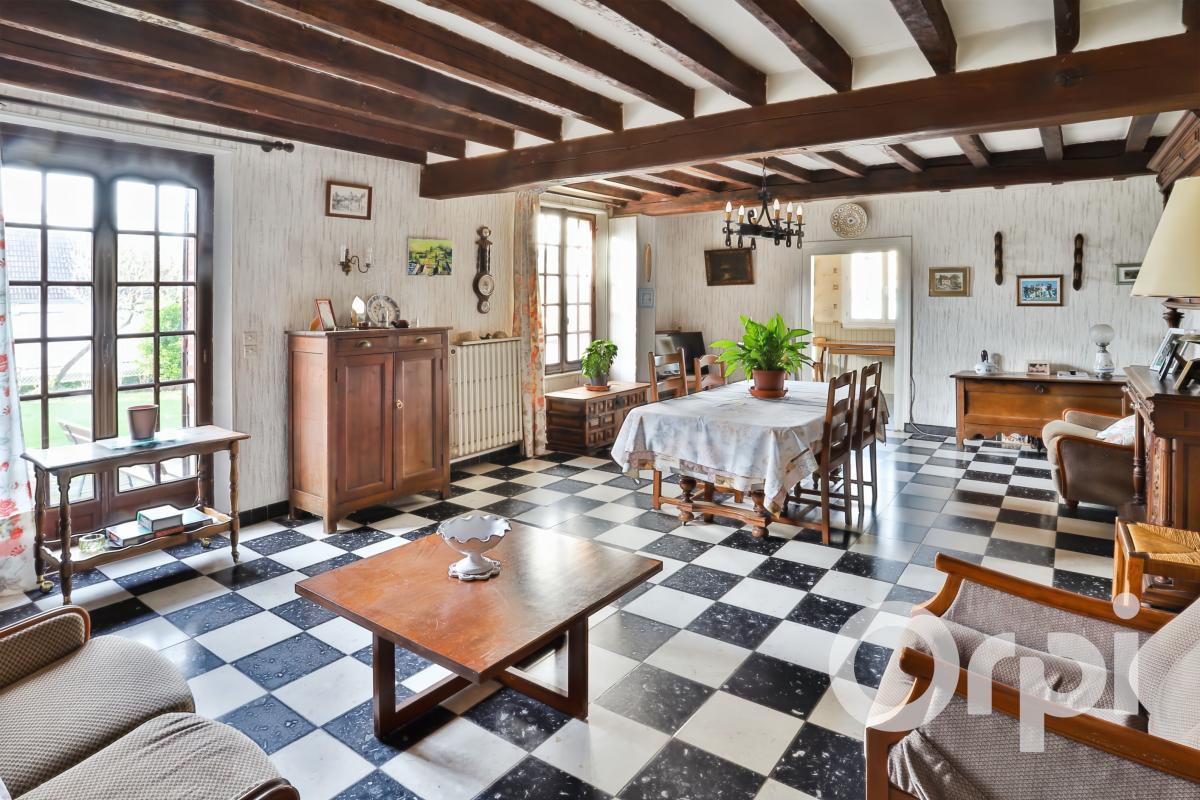 Entre Gisors et Gournay en bray , Cette maison ancienne de 161 m2 comprend une entrée sur un vaste séjour double agrémenté de 2 cheminées, la cuisine est aménagée, couloir, salle de bains, wc séparé, une grande cage d'escalier vous amène à l 'étage ...