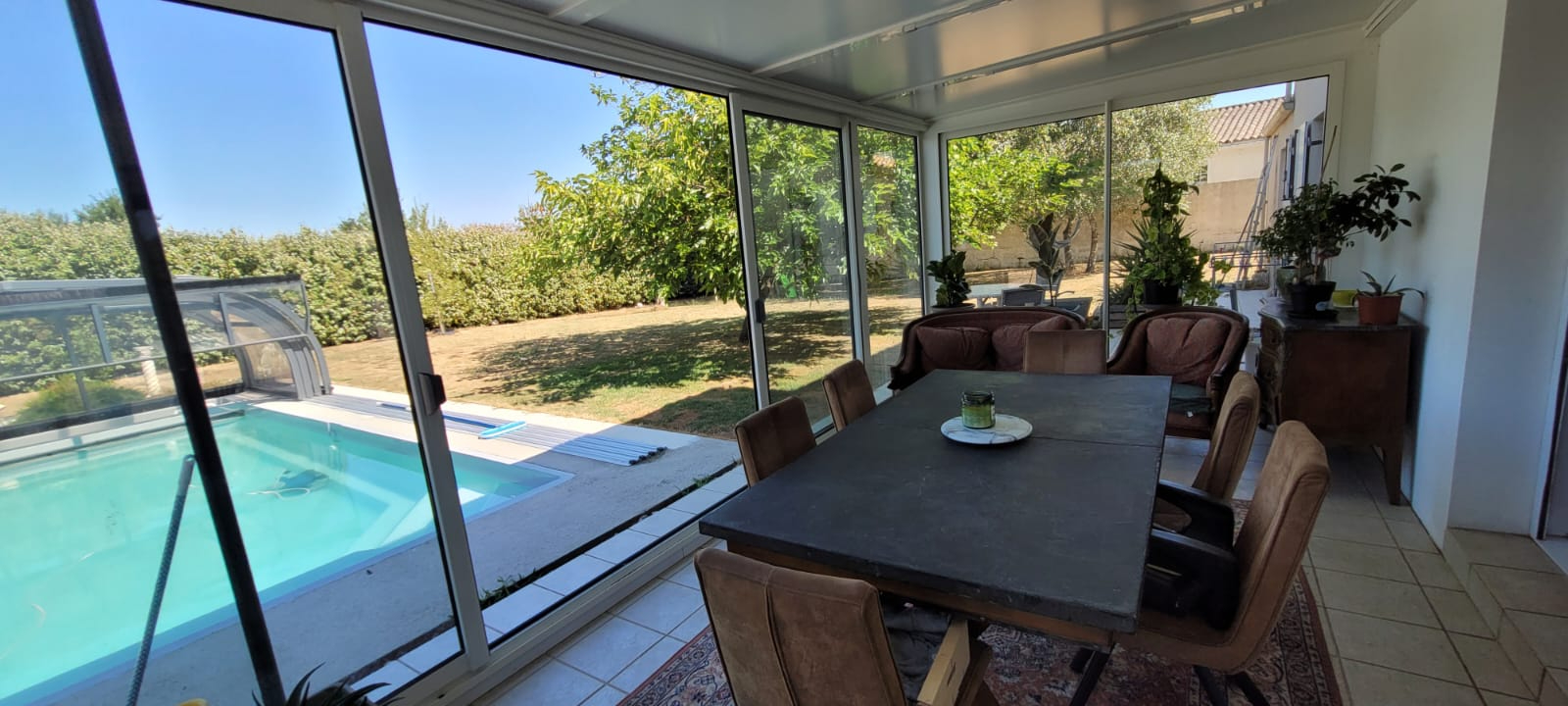 Vous pourrez profiter depuis sa superbe véranda de la vue sur son agréable piscine neuve chauffée et sécurisée.