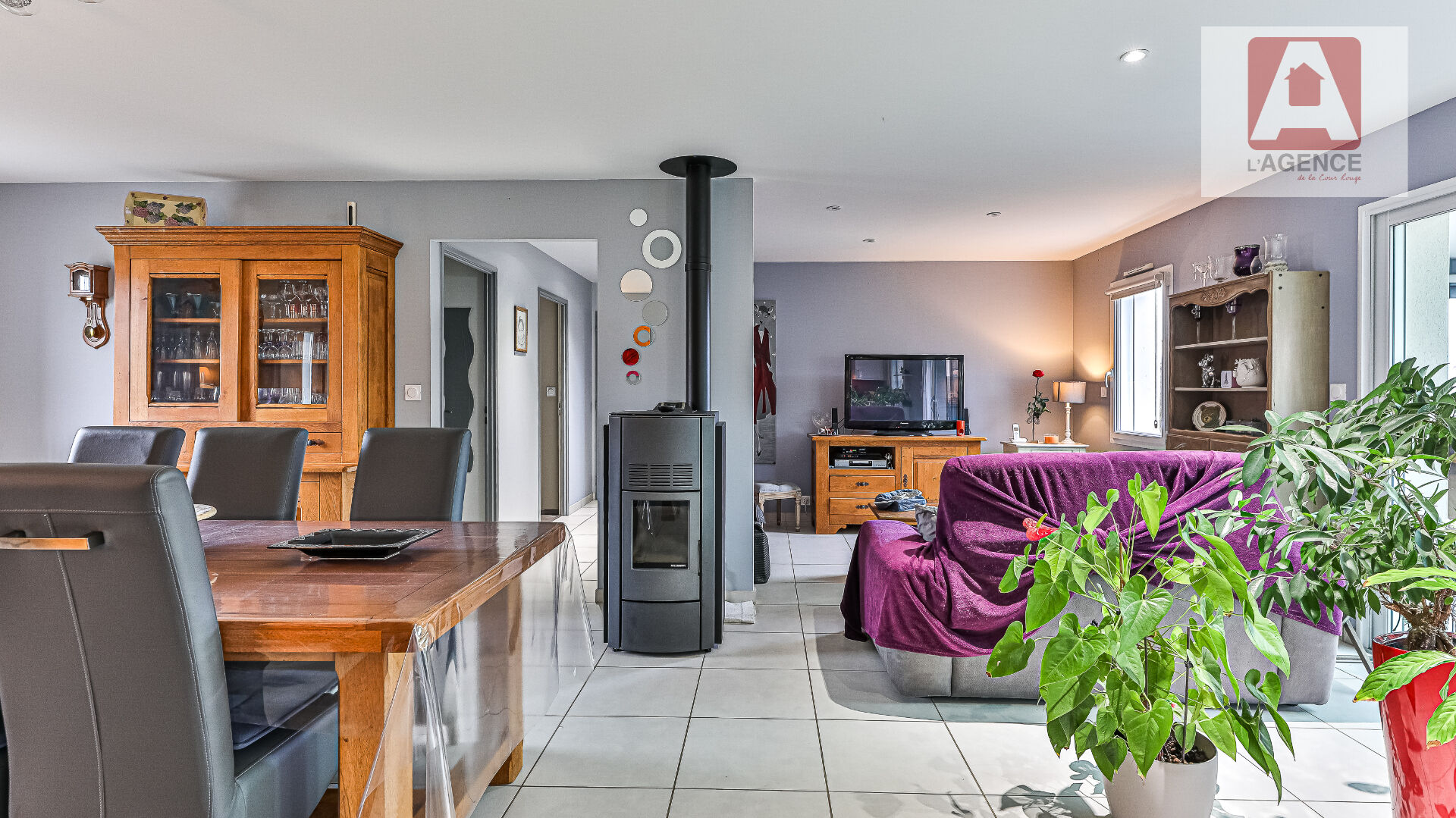 Centre-bourg, maison d'habitation offrant de beaux volumes (150 m² hab), cuisine aménagée et équipée, pièce de vie avec cheminée de 55 m², 4 chambres, 2 salle d'eau, 2 wc, garage, buanderie, cave, dépendance, le tou...