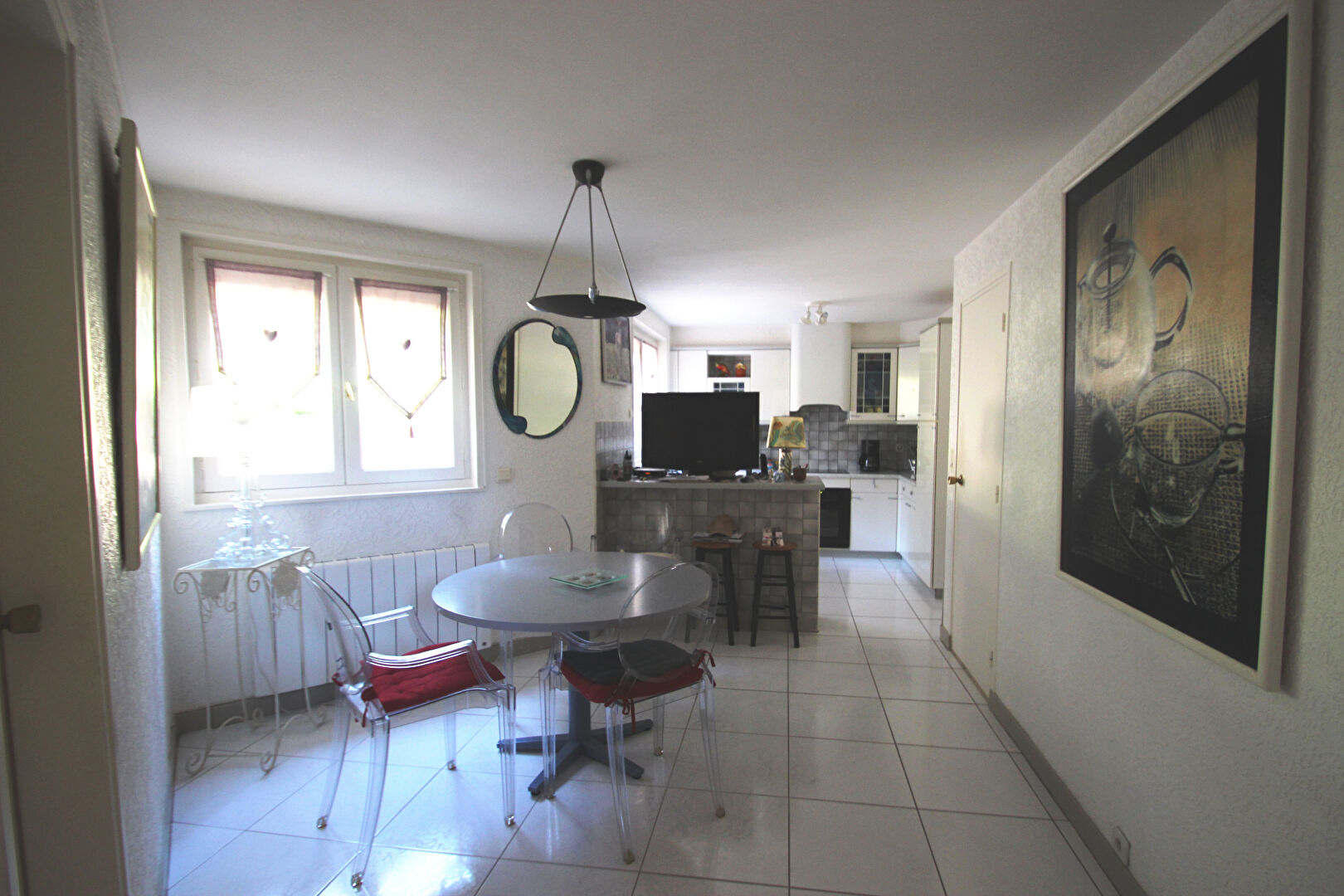 Depuis l'entrée, on accède au séjour lumineux et au salon avec cheminée, ouverts sur une cui...