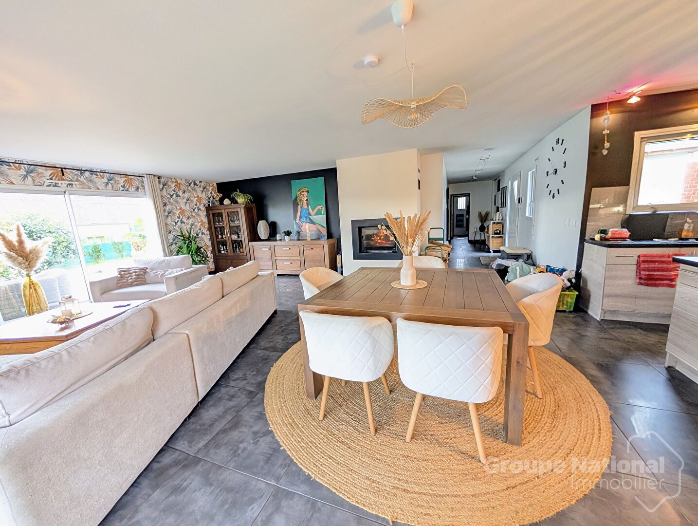 Belle maison lumineuse de plain pied comprenant: une entrée sur dégagement avec placards,une salle d'eau à l'italienne, WC séparé, un triple séjour avec chem...