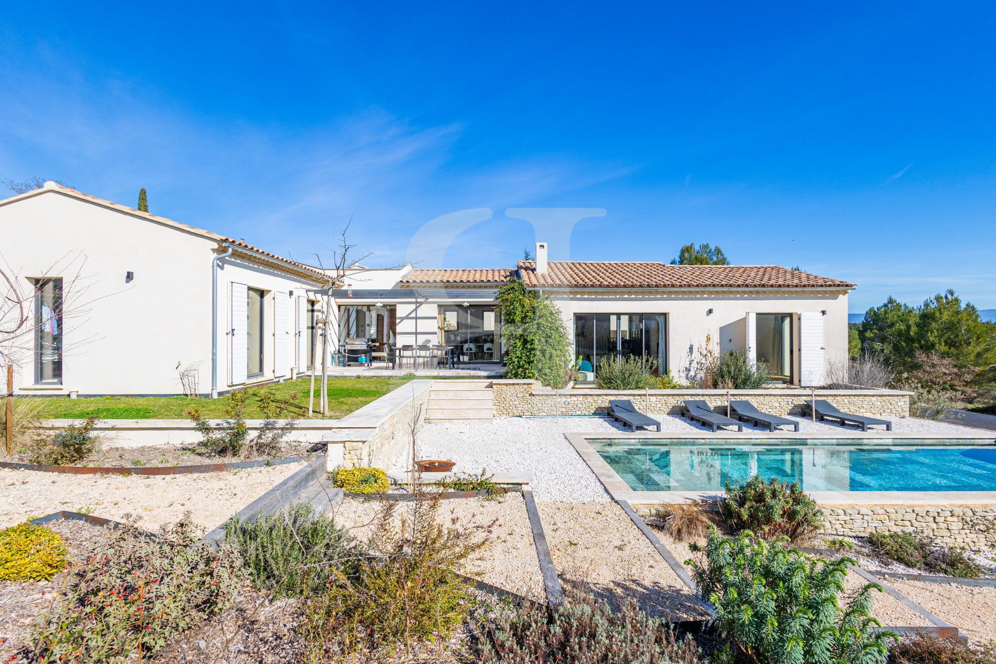 Votre agence immobilière Art Immo vous propose à la vente, en campagne du village prisé de Gordes, cette belle propriété contemporaine d'environ 190 m² habitables avec piscine au c?ur du Luberon.