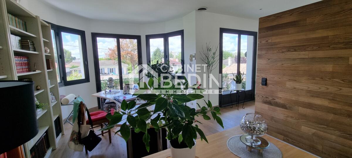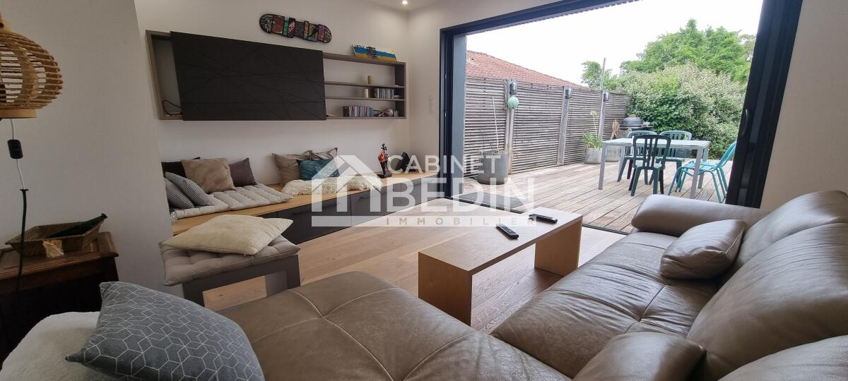 GRADIGNAN HYPER CENTRE. EXTRÊMEMENT rare maison contemporaine au grand calme en HYPER CENTRE. Vous serez séduits par sa pièce de vie de 60m2 et ses baies vitrées offrant de la lumière à chaque moment de la journée, une belle hauteur de plafond accentue le volu...