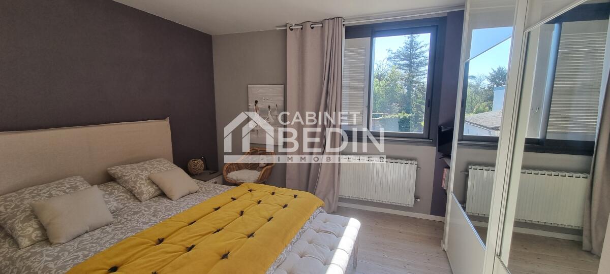 RARE !! Idéalement située dans le quartier « Brannes-Parc de Cotor » de Gradignan, maison d'architecte de 160m2 avec 4 chambres, garage et grand jardin avec dépendance sur parcelle de 906m2. De plain-pied, elle est composée d'un grand séjour lumineu...