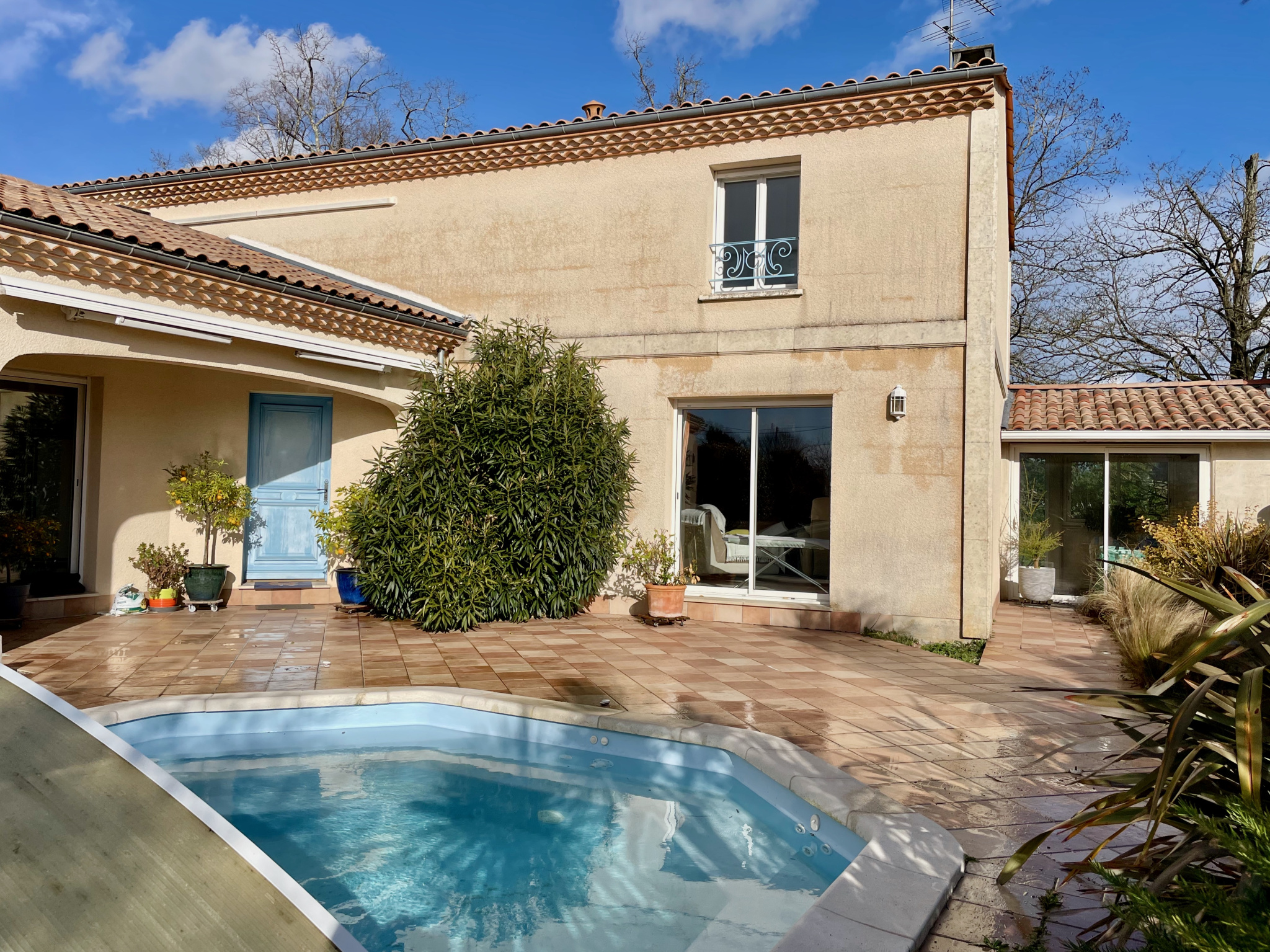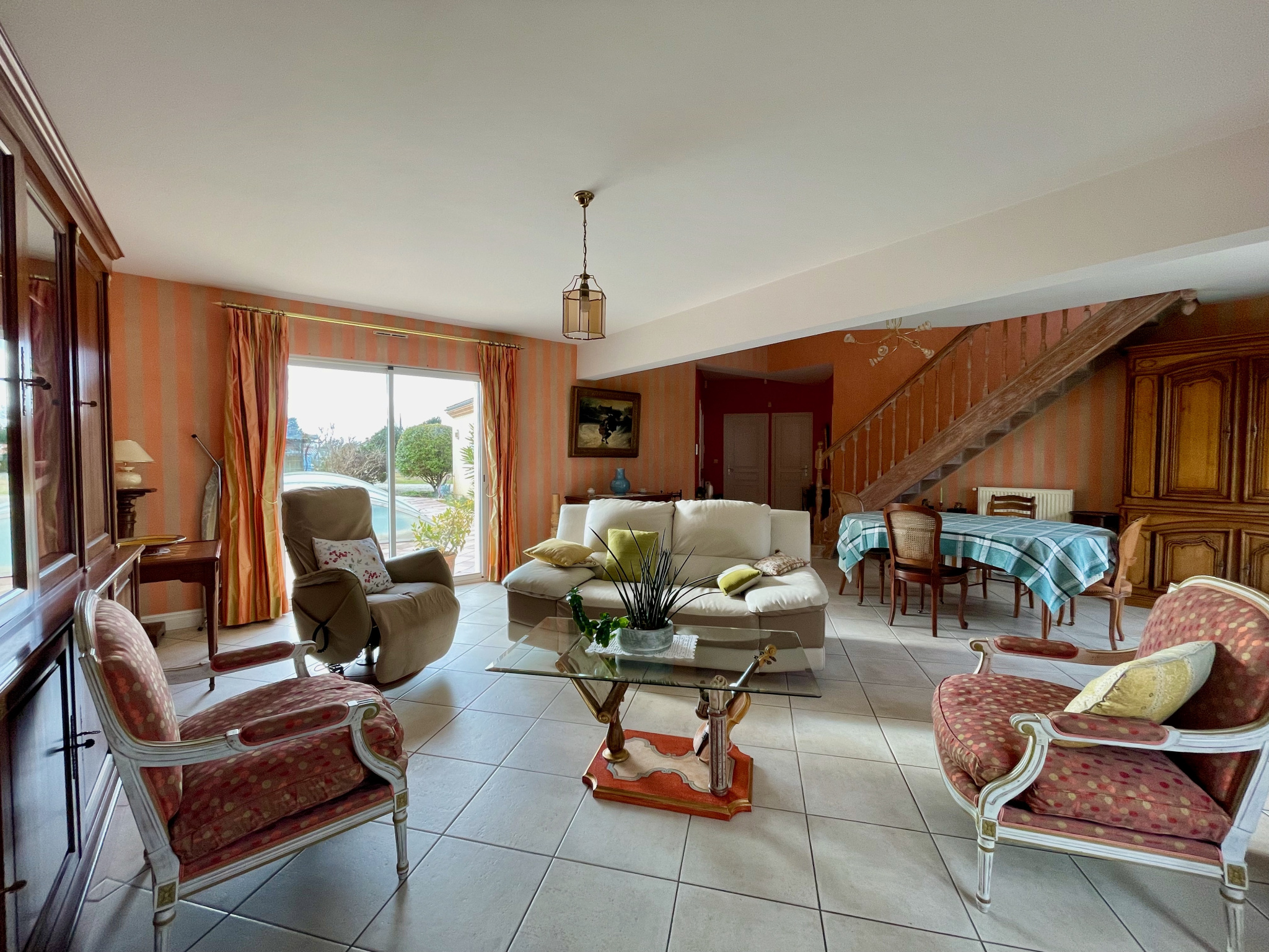 Belle maison familiale indépendante, chaleureuse et pratique sur une parcelle au calme et sans vis-à-vis de plus de 1000 m2 avec piscine.