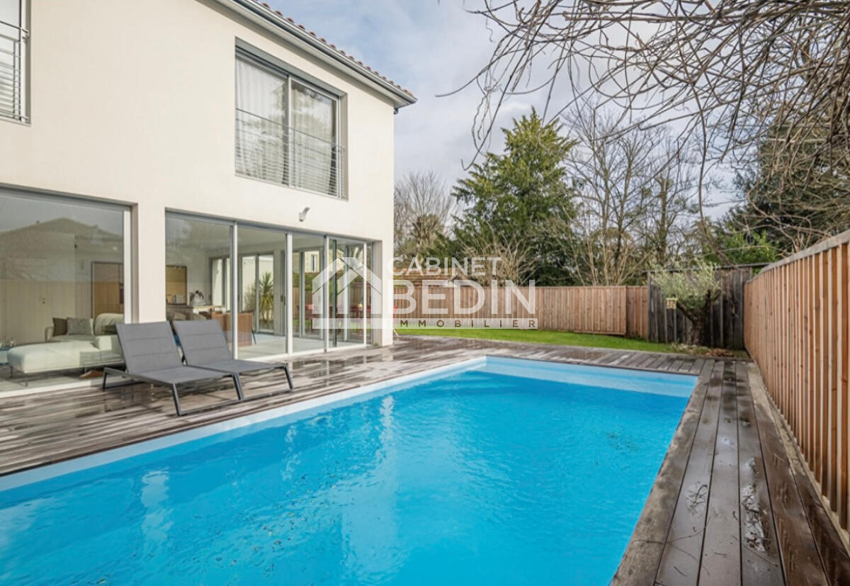 GRADIGNAN BOIS D'ANDUCHE. Dans un cadre boisé privilégié, découvrez cette maison d'architecte aux volumes généreux et à l'ambiance contemporaine, sur une parcelle d'environ 1000 m². Dès l'entrée, une belle pièce de vie baignée de lumiè...