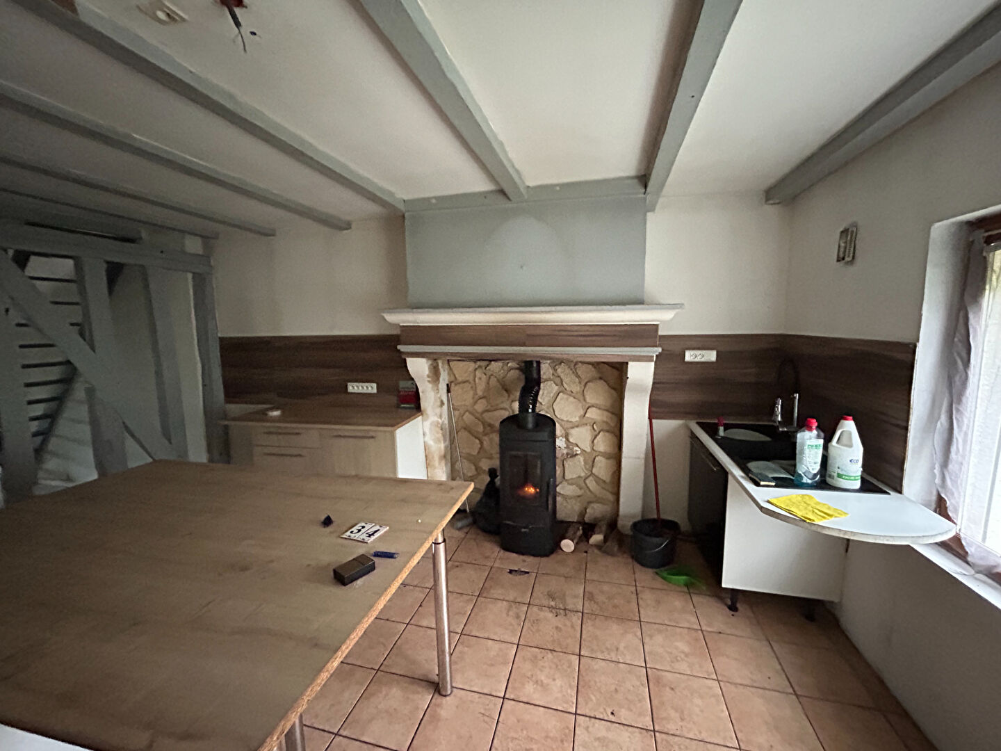 FORT POTENTIEL pour cette maison à rénover de type F4 d'une surface exploitable de 137,81m² composée au rez de chaussée d'une entrée, une pièce de vie de 26m² avec poêle à bois, une cuisine indépendante.
