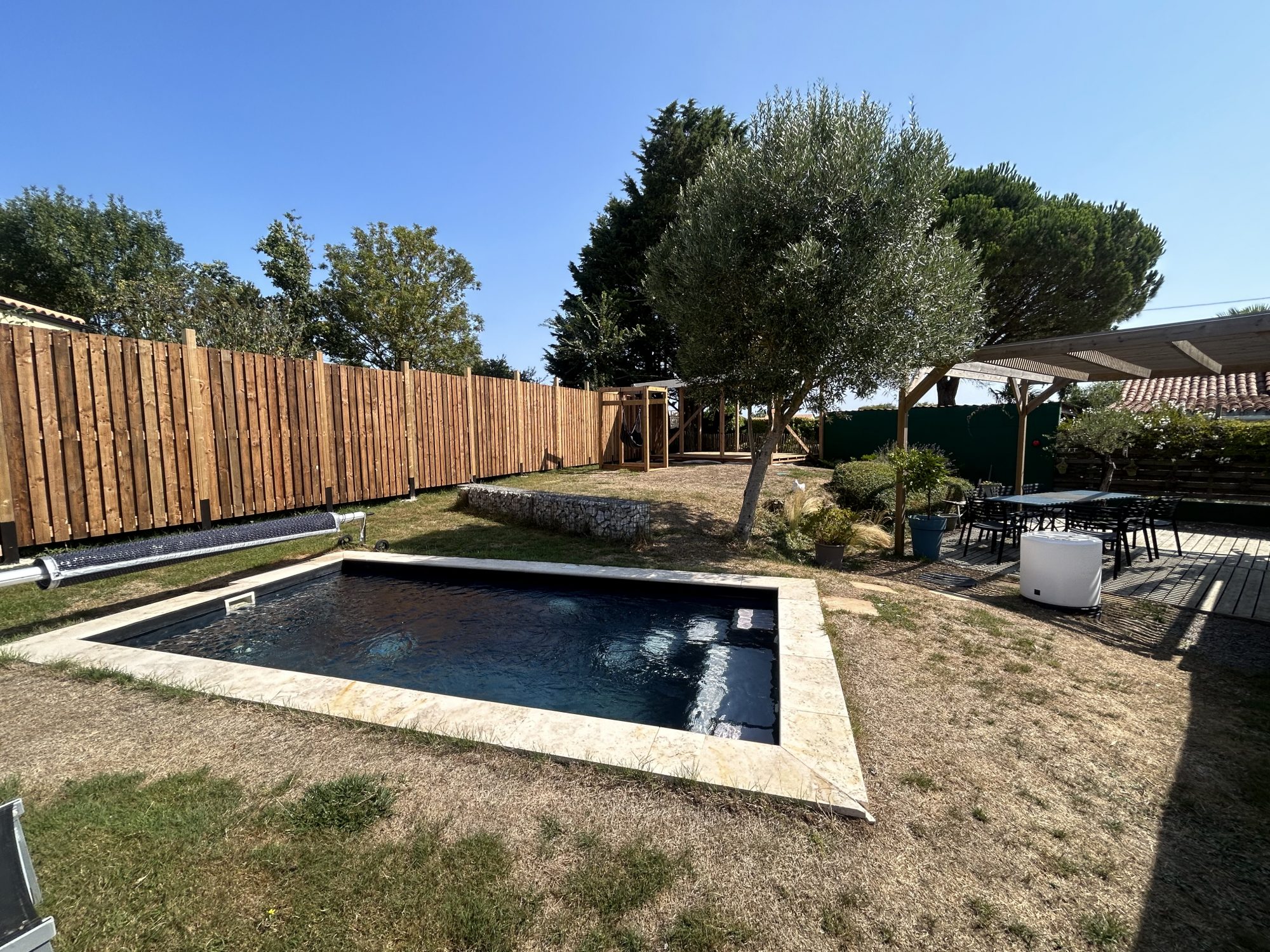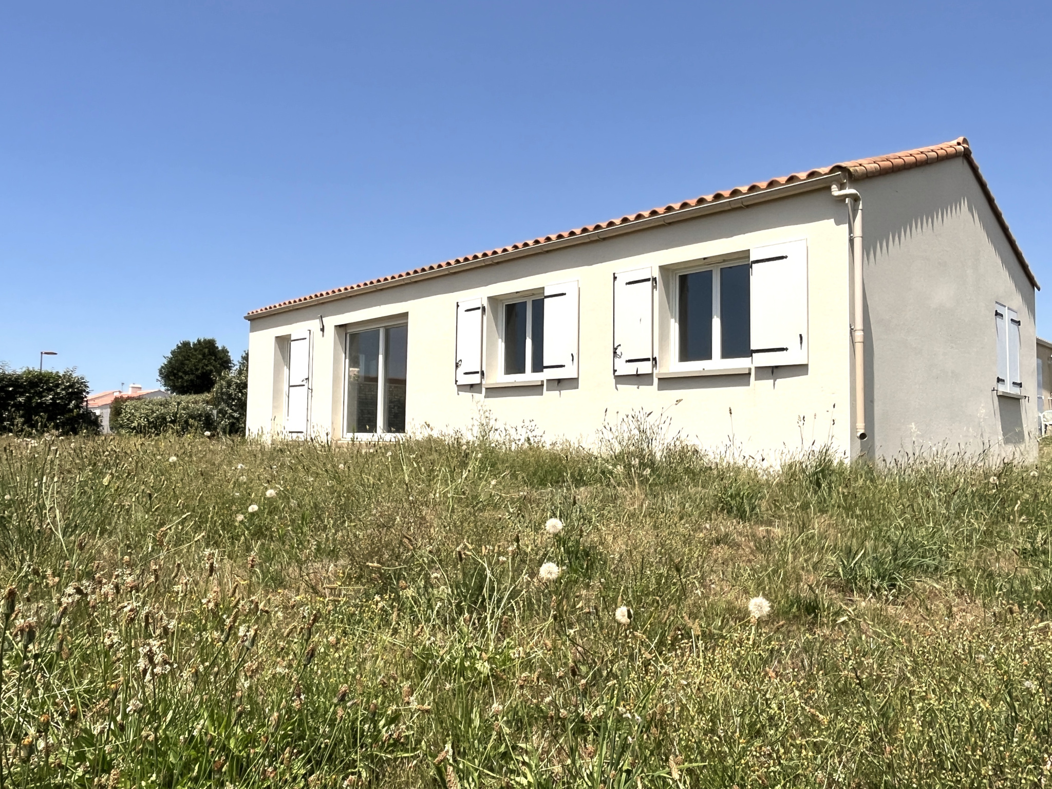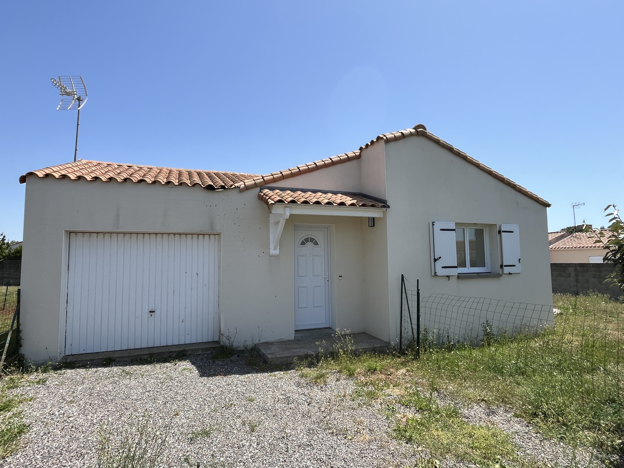 EXCLUSIVITE: bourg de Grosbreuil, pavillon de plain-pied de 2004 comprenant belle pièce de vie avec cuisine ouverte donnant sur terrasse ensoleilée, dégagement desservant 3 chambres, une salle de bains et des WC, un garage. terrain de 462 m2.