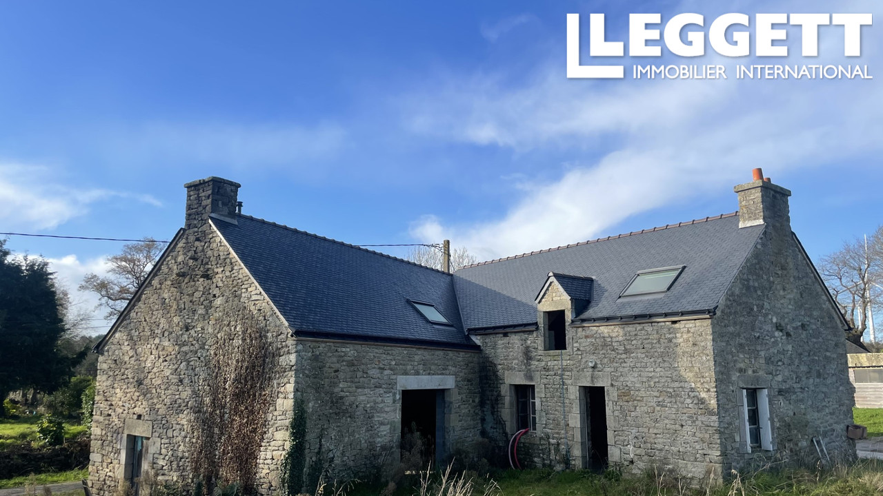 Guéhenno, à 6 minutes, Saint Jean Brévelay, en campagne, maison traditionnelle de 123m² habitables sur un terrain arboré de 3250m² avec hangar de 380m² et puits. Lumineuse, elle offre hall, salon séjour, deux chambres, salle d'eau (récente), WC. A l'...