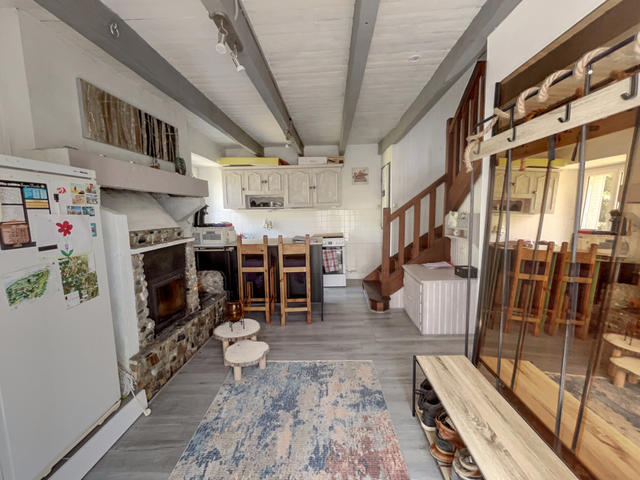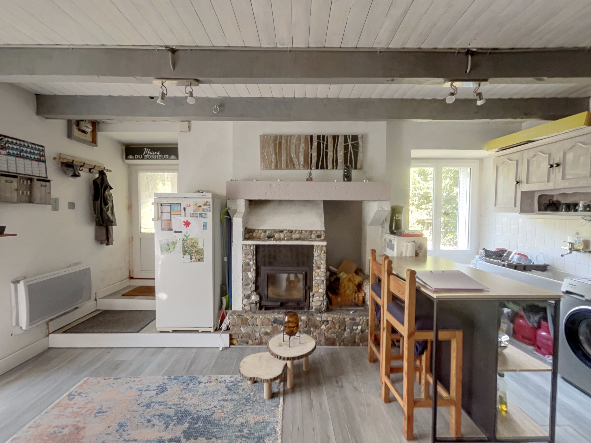 -Au rez-de-chaussée : une entrée avec placard, un salon séjour lumineux exposé Sud-Ouest avec poêle à bois, une cuisine aména...