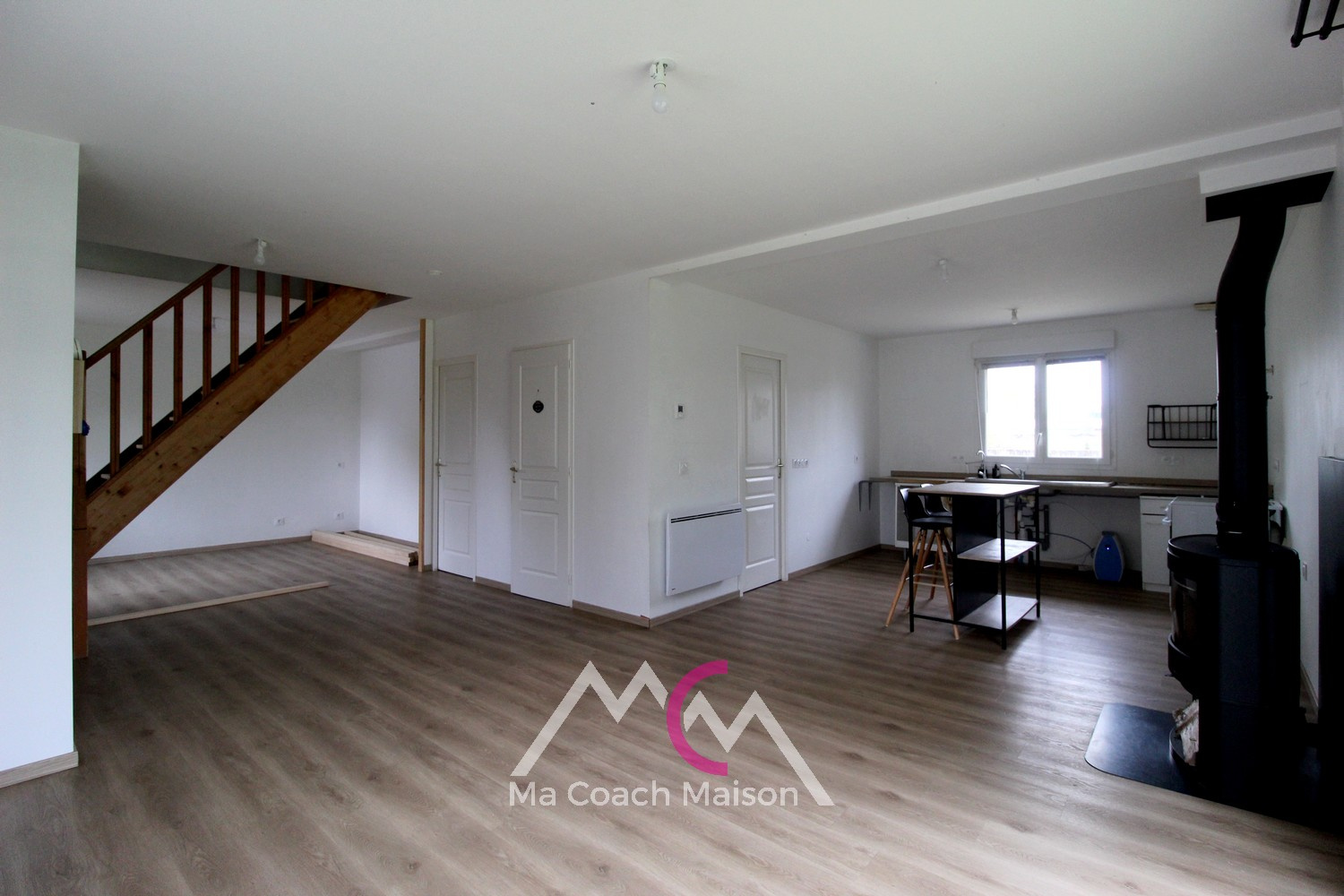 Elle comprend au rez-de-chaussée un salon-séjour avec un poêle à bois, un espace cuisine ouvert à aménager selon vos souh...