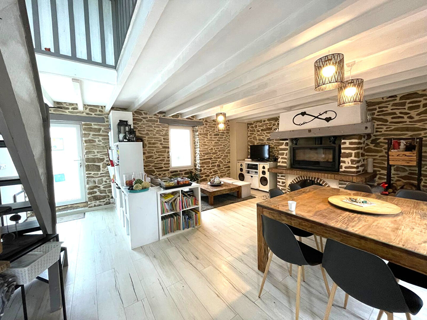 GUERANDE 44350 - 750m des remparts, commerces à pieds. Maison entièrement rénovée en 2021 d'environ 81 m² (94 m² surface utile) comprenant une entrée sur une vaste pièce de vie avec un poêle à granules, une cuisine aménagée et équipée ouverte donnant accè...