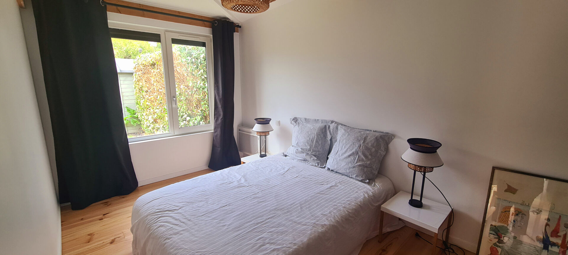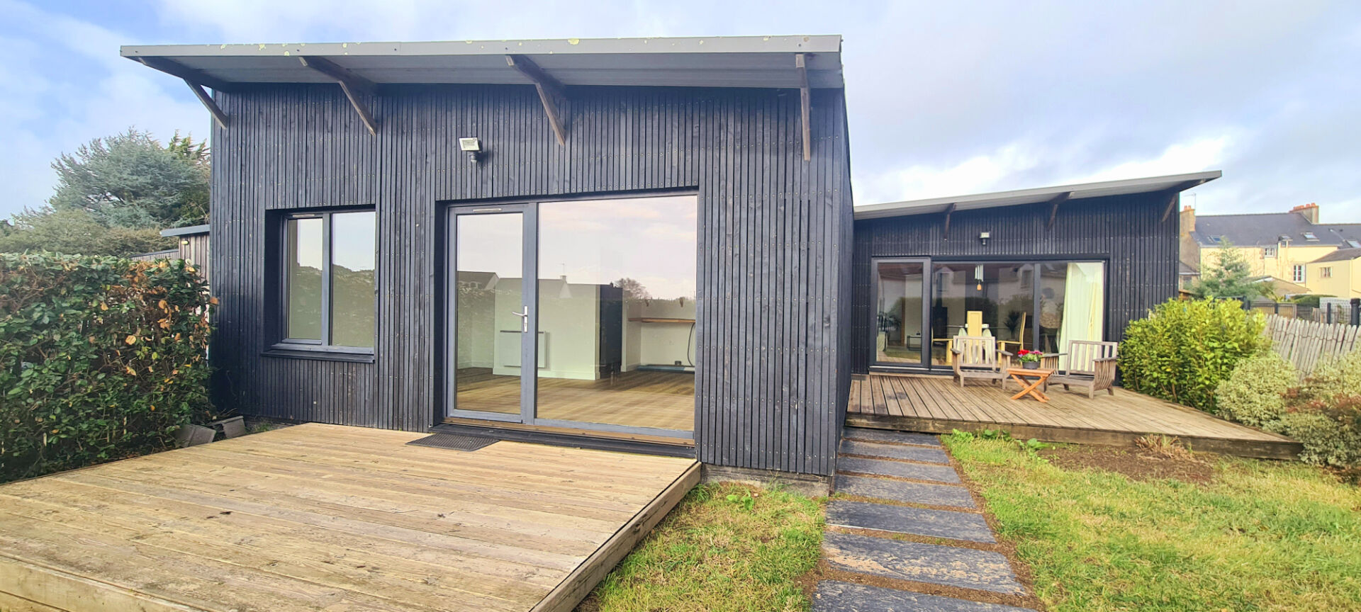 Dans le centre-ville de Guérande, à 600m des remparts, cet ensemble de deux maisons en bois se compose, pour la plus grande : d'une pièce de vie lumineuse de 35m² avec une cuisine aménagée et équipée, un bureau, un dégagement avec placard, une salle de ba...