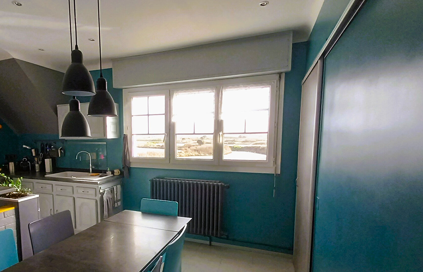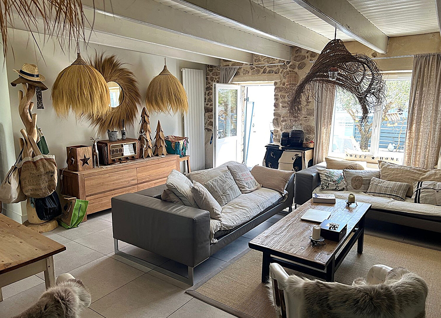 Salon séjour lumineux avec vue sur les marais salants, grande cui...