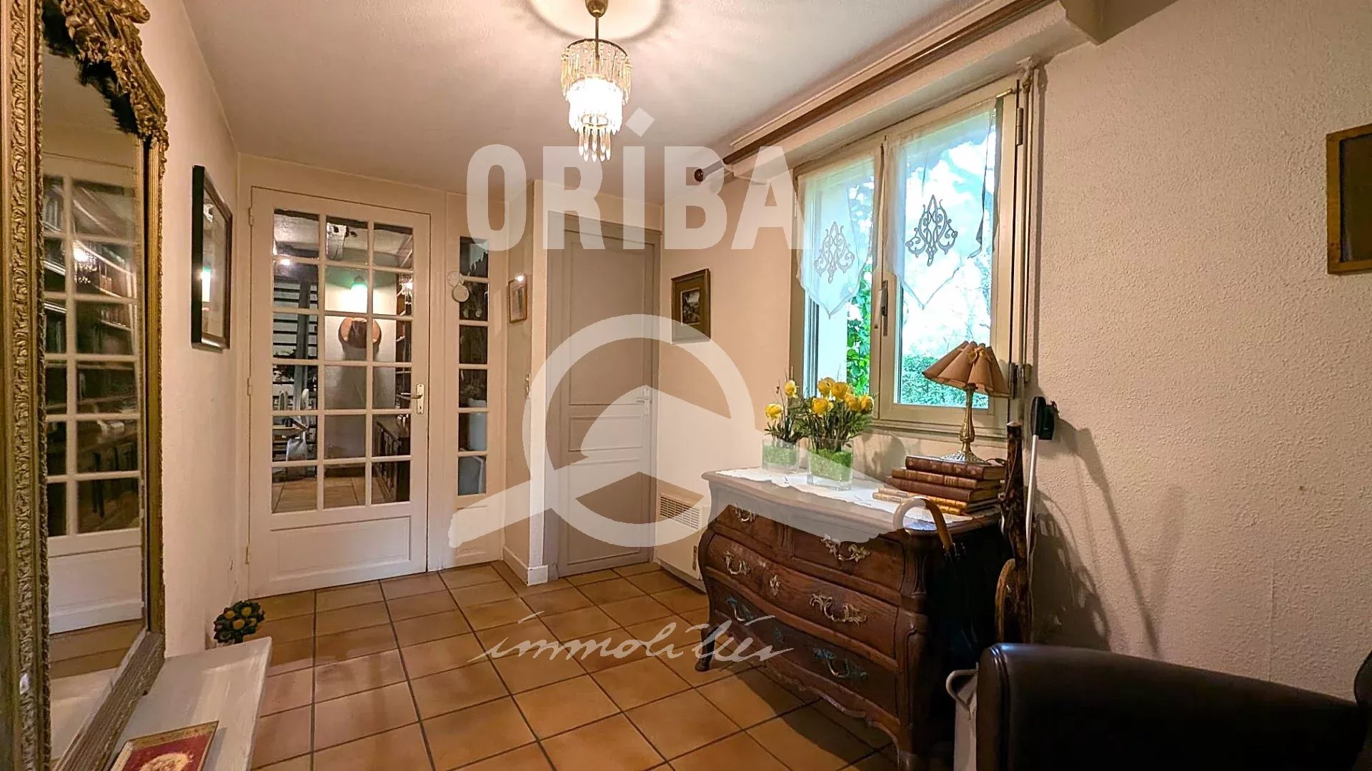 Une belle entrée dessert: un salon-séjour de 41 m² avec cheminée ouvrant sur une terrasse expos...