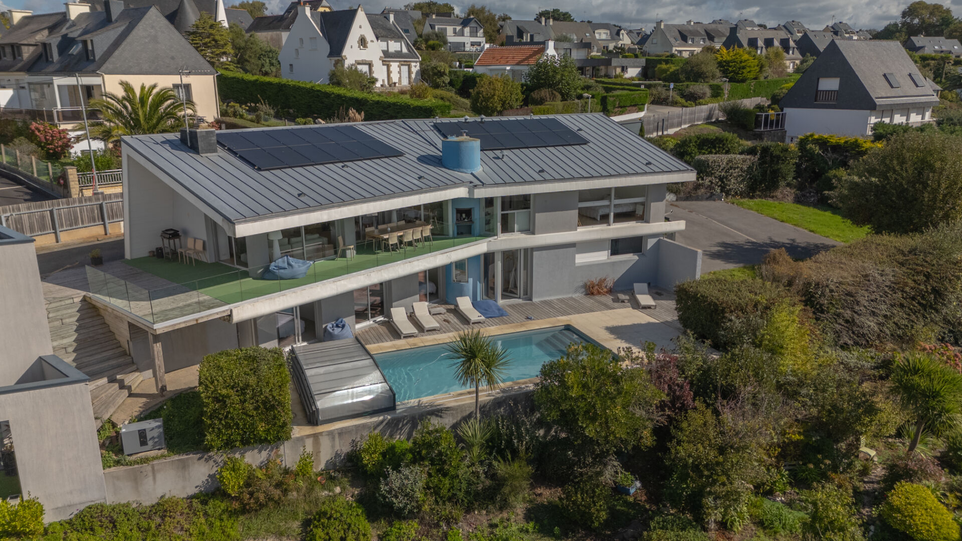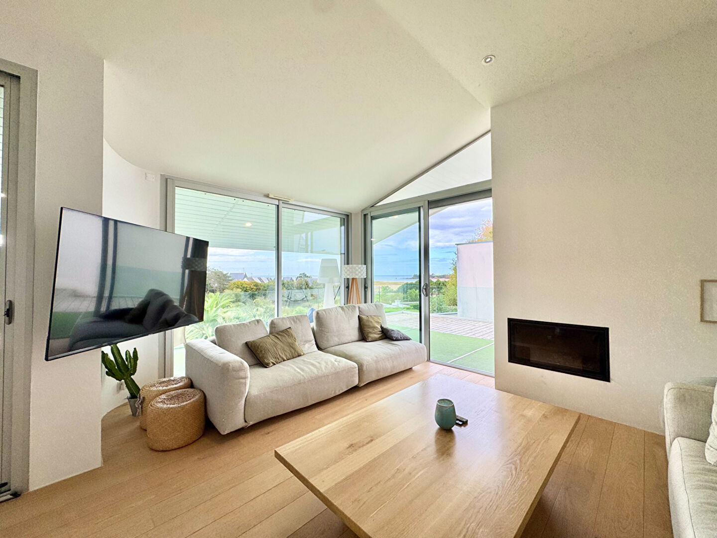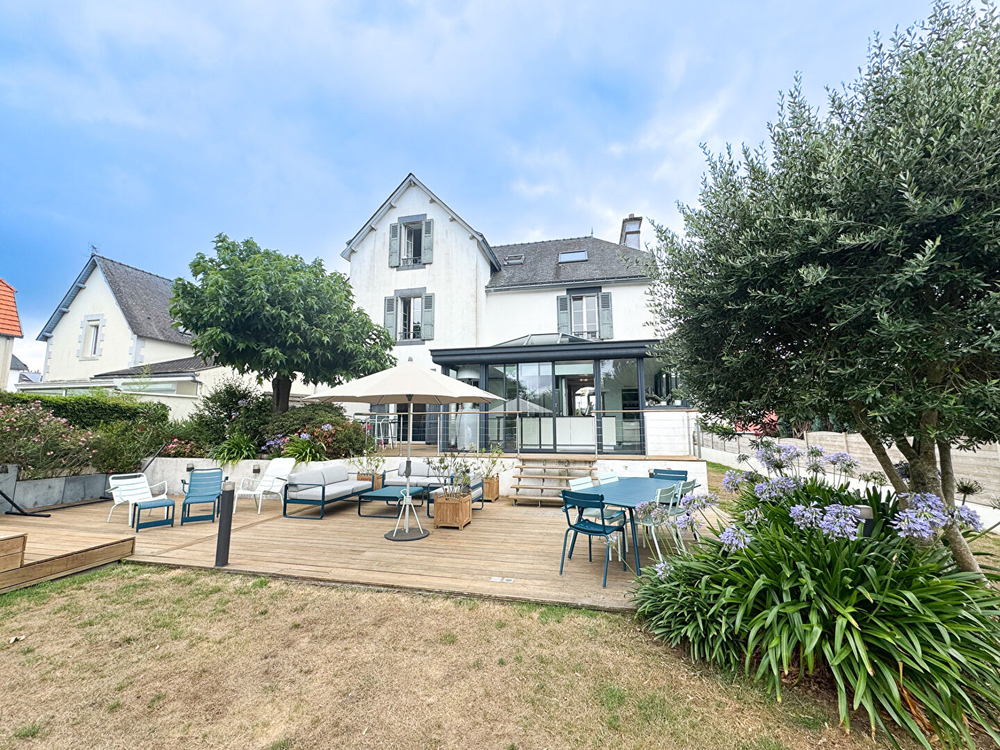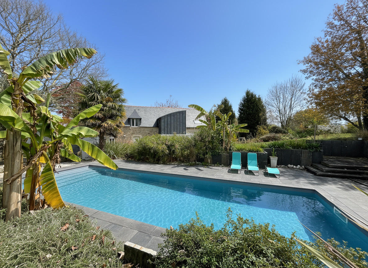 Vos agences Loge 7 Immobilier vous présentent, en direction des plages et au coeur d'un quartier résidentiel très prisé de GUIDEL, une belle contemporaine d'exception composée de 4 chambres dont une suite parentale en rez-de-chaussée.