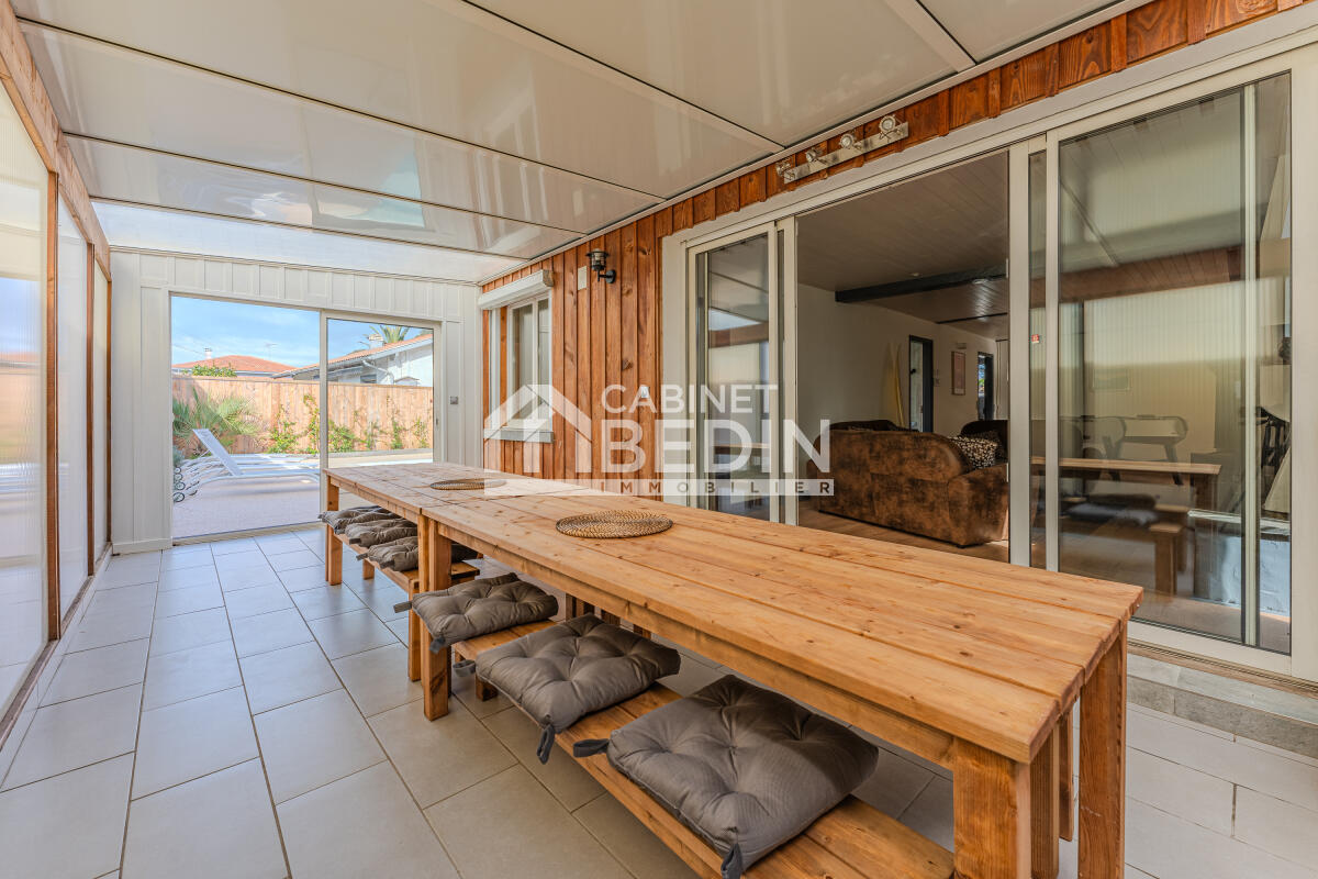 GUJAN-MESTRAS. Grande maison 4 chambres + bureau, vaste salon séjour lumineux sur un terrain d'environ 560 m2 comprenant parking, piscine, grande terrasse agrémenté d'un bar extérieur. Secteur privilégié, proximité plage et commerces, au calme dans u...