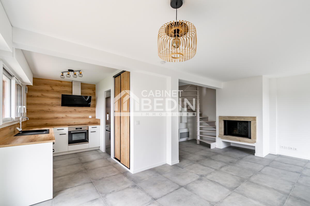 A28844EPR33 - Maison de 110m² entièrement rénovée avec trois chambres, une dépendance et une piscine située dans une rue calme à proximité de la mairie.