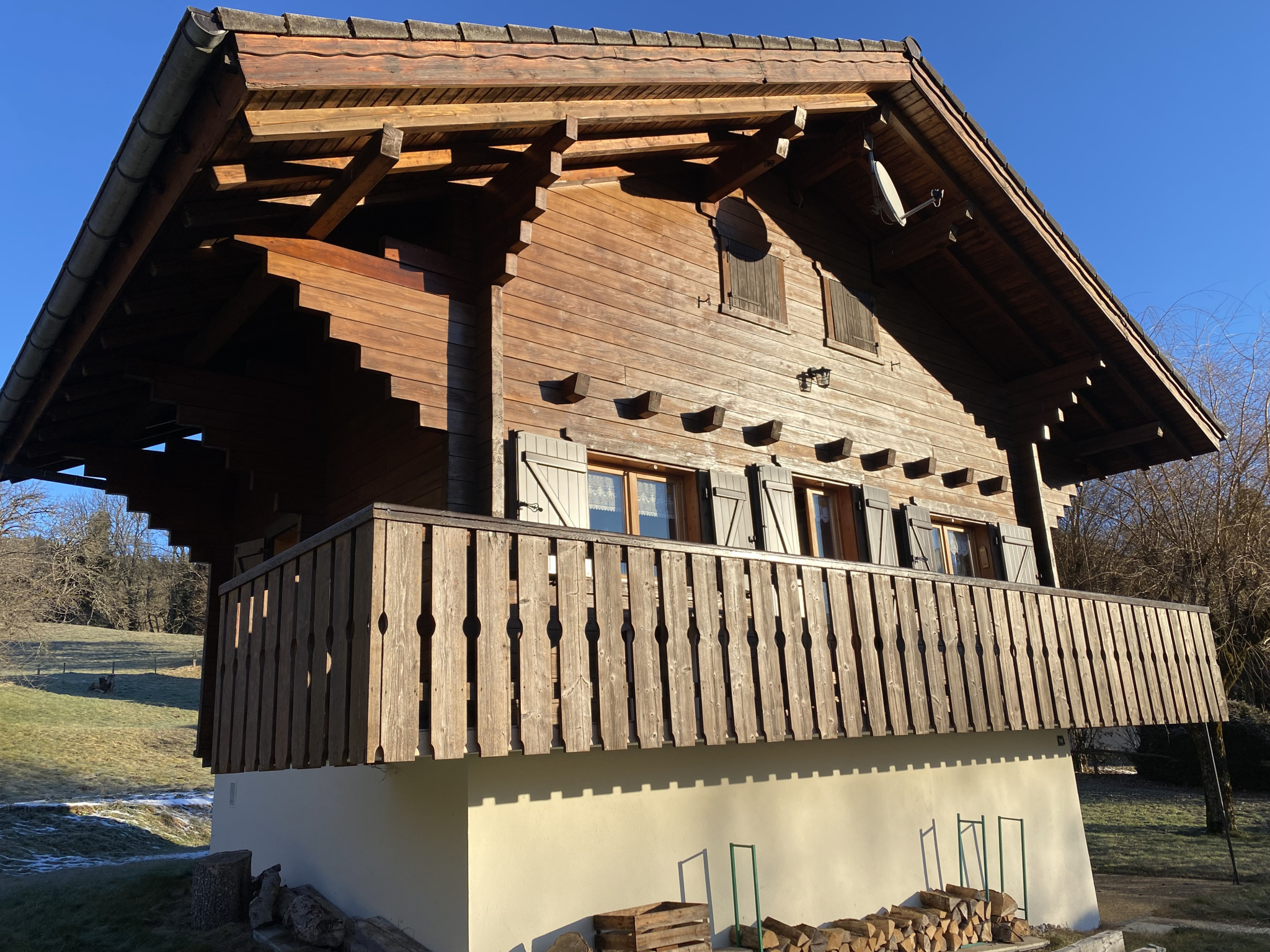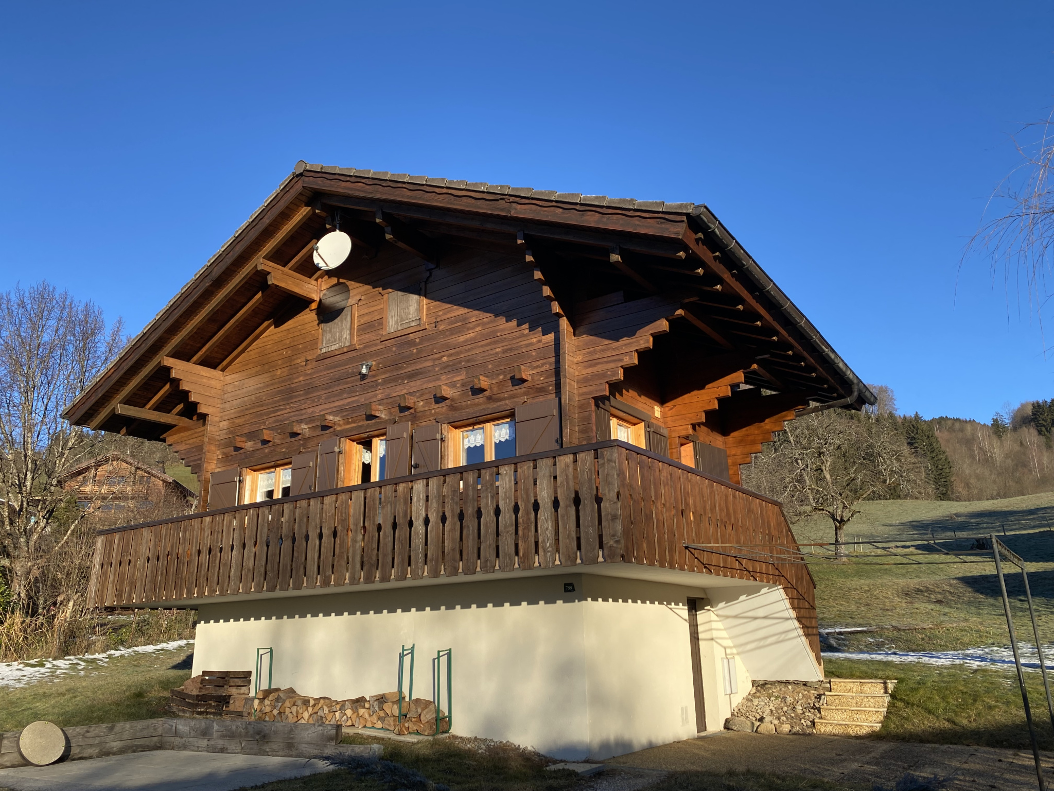 En Exclusivité sur les hauteurs d'Habère-Lullin un Chalet en copropriété horizontale de 1986 d'une surface utile de 57 m2 dont 47 m2 habitable loi carrez comprenant une entrée, cuisine ouverte sur salon/séjour, salle de bains, wc, placards et balcon;...