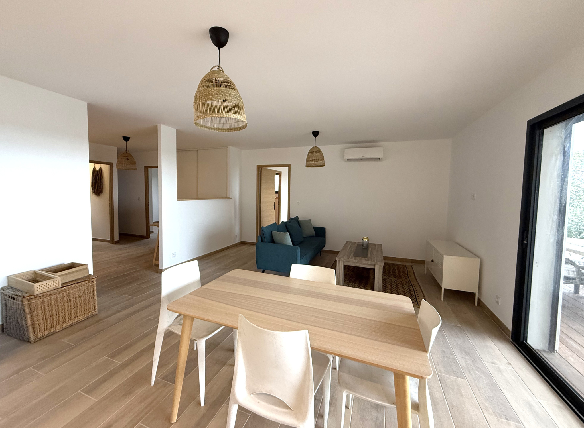 A seulement 20 minutes des plages, au coeur d'un village de montagne, cette villa contemporaine de type T4 d'environ 118 m², édifiée en 2024 sur un terrain de 1 000 m², offre un cadre de vie paisible et authentique, en pleine campagne.