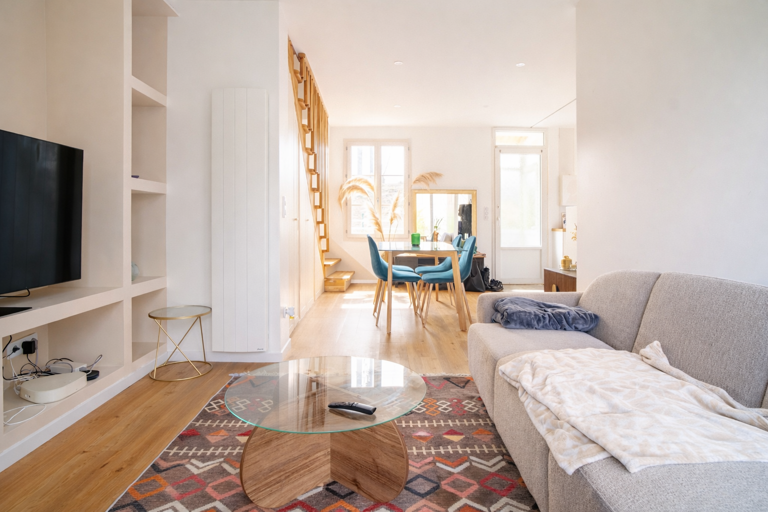 Elle offre un grand séjour de 50 m² avec salon, salle à manger et cuisine ouverte moderne et bien équipée.