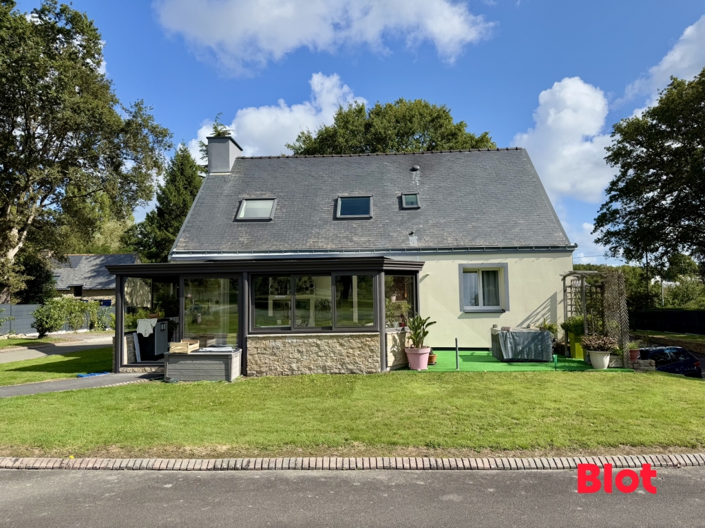 Maison familiale comprenant au rdc une entrée avec placard, salon/séjour exposé est/ouest avec cheminée attenant à une cuisine ouverte aménagée et équipée, véranda, deux chambres, un bureau , salle de bains (douche/baignoire), wc. ...
