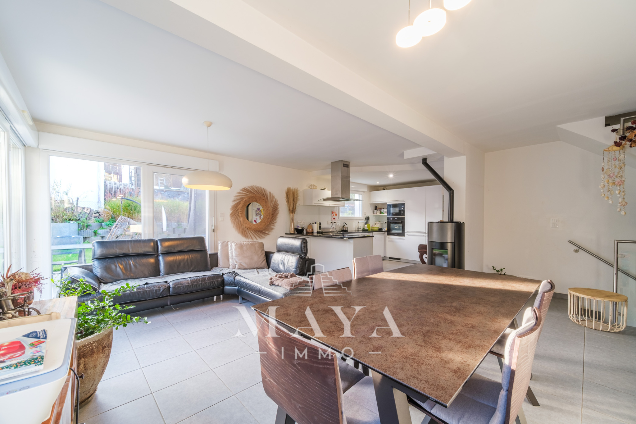 Elle se compose au rez-de-chaussée, d'une entrée avec placard de rangement, un WC séparé, une cuisine ouverte sur un lumineux salon/s...