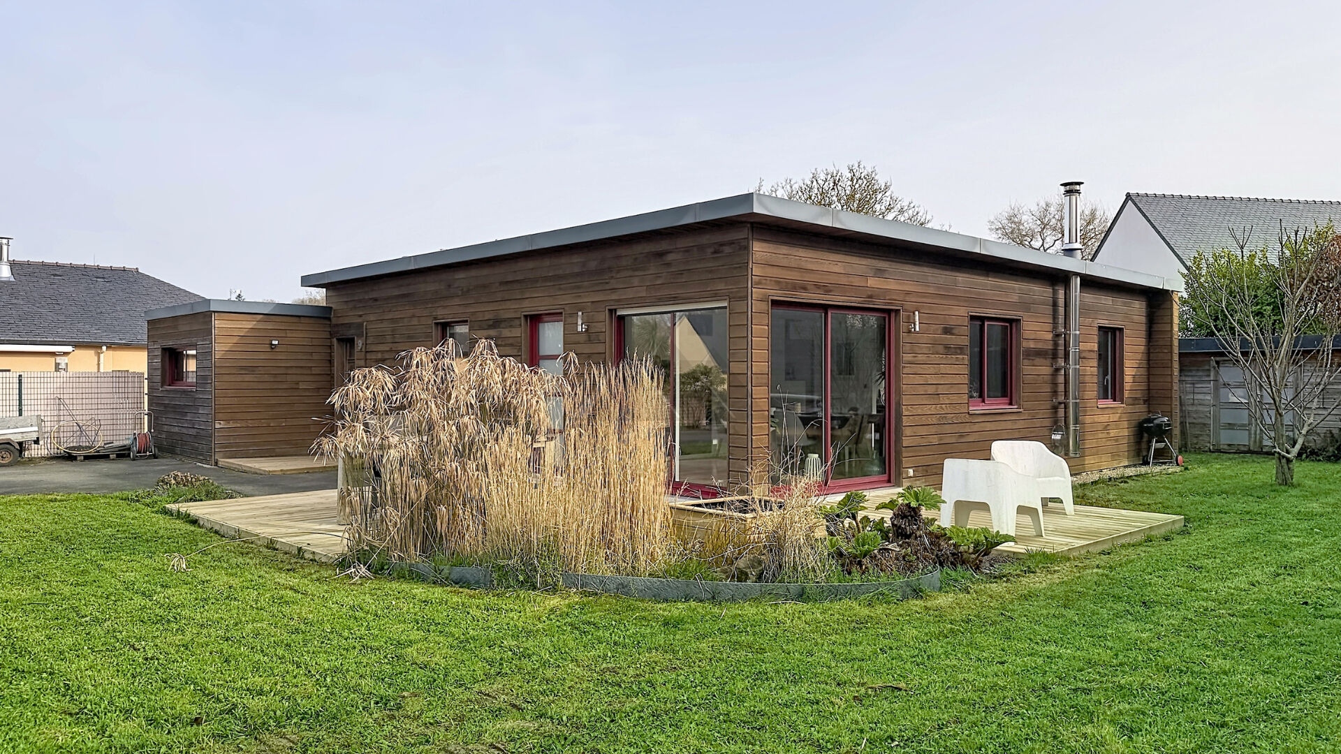 Maison contemporaine de plain-pied en bois à l'Hôpital Camfrout