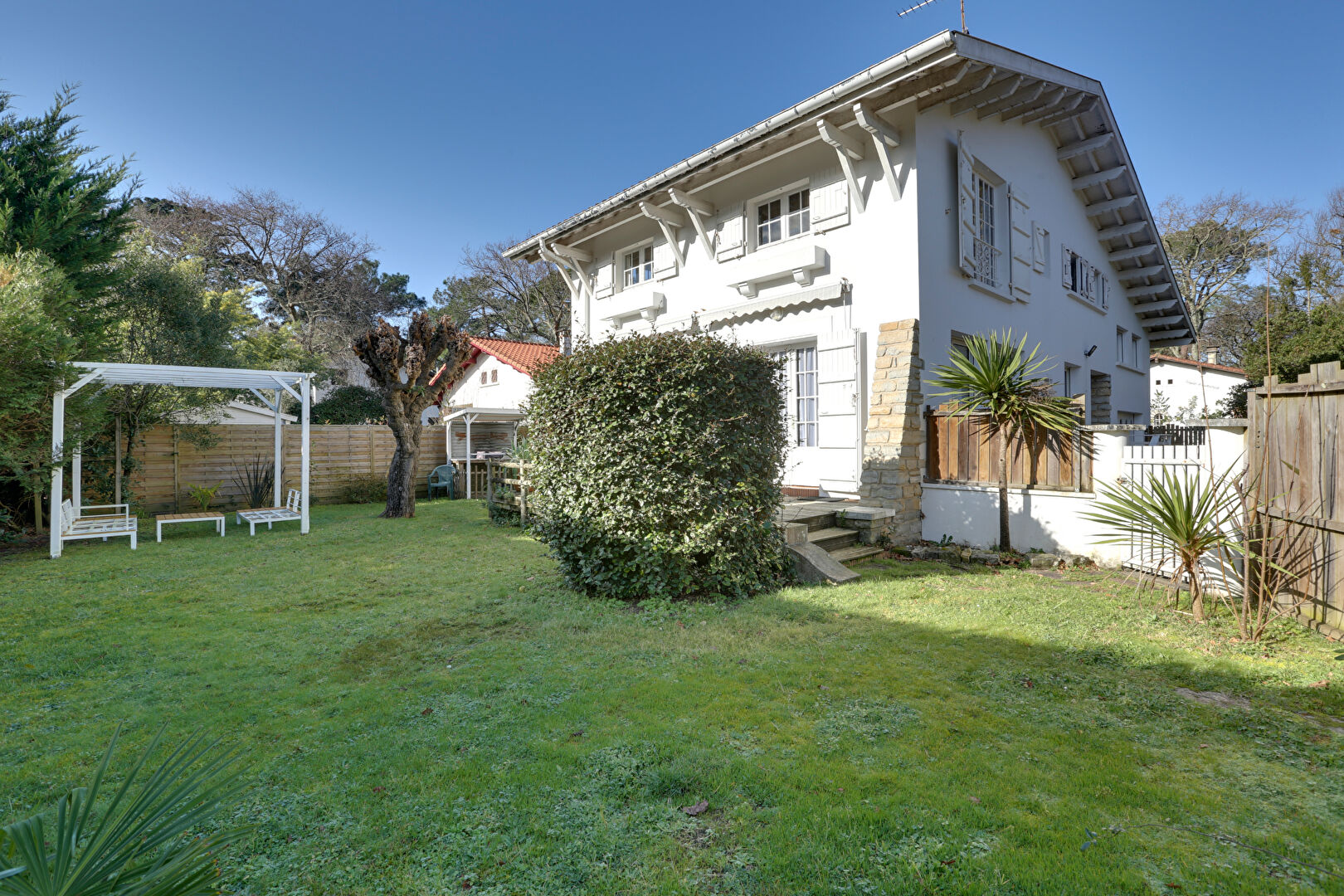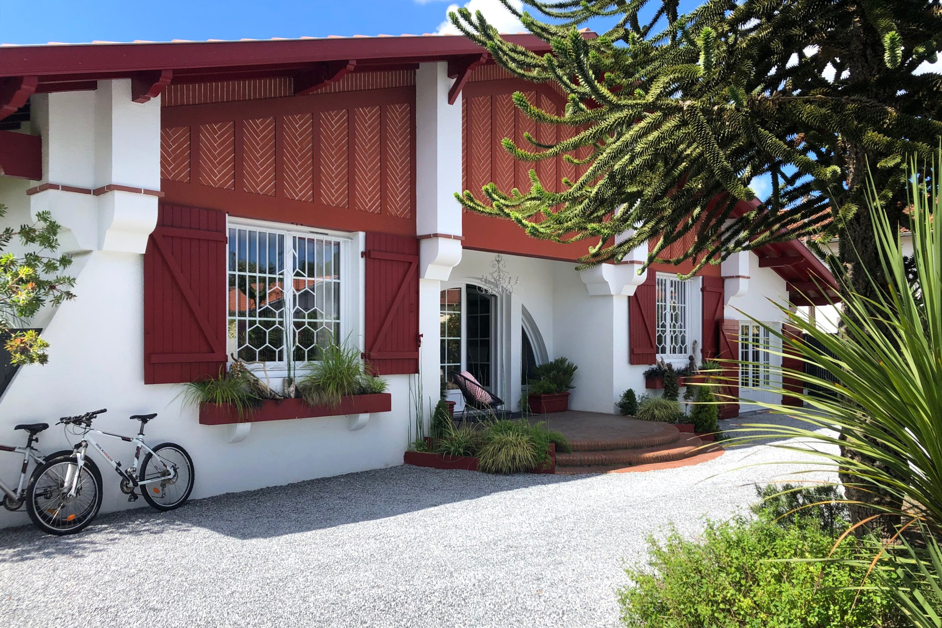HOSSEGOR - Superbe villa d'environ 200 m2 (177 m2 habitables + 23 m2 de buanderie et local technique) de style basco-landais entièrement rénovée avec des matériaux de qualité, la Villa ARAUCARIA est à deux pas des commerces et des pistes cyclables.