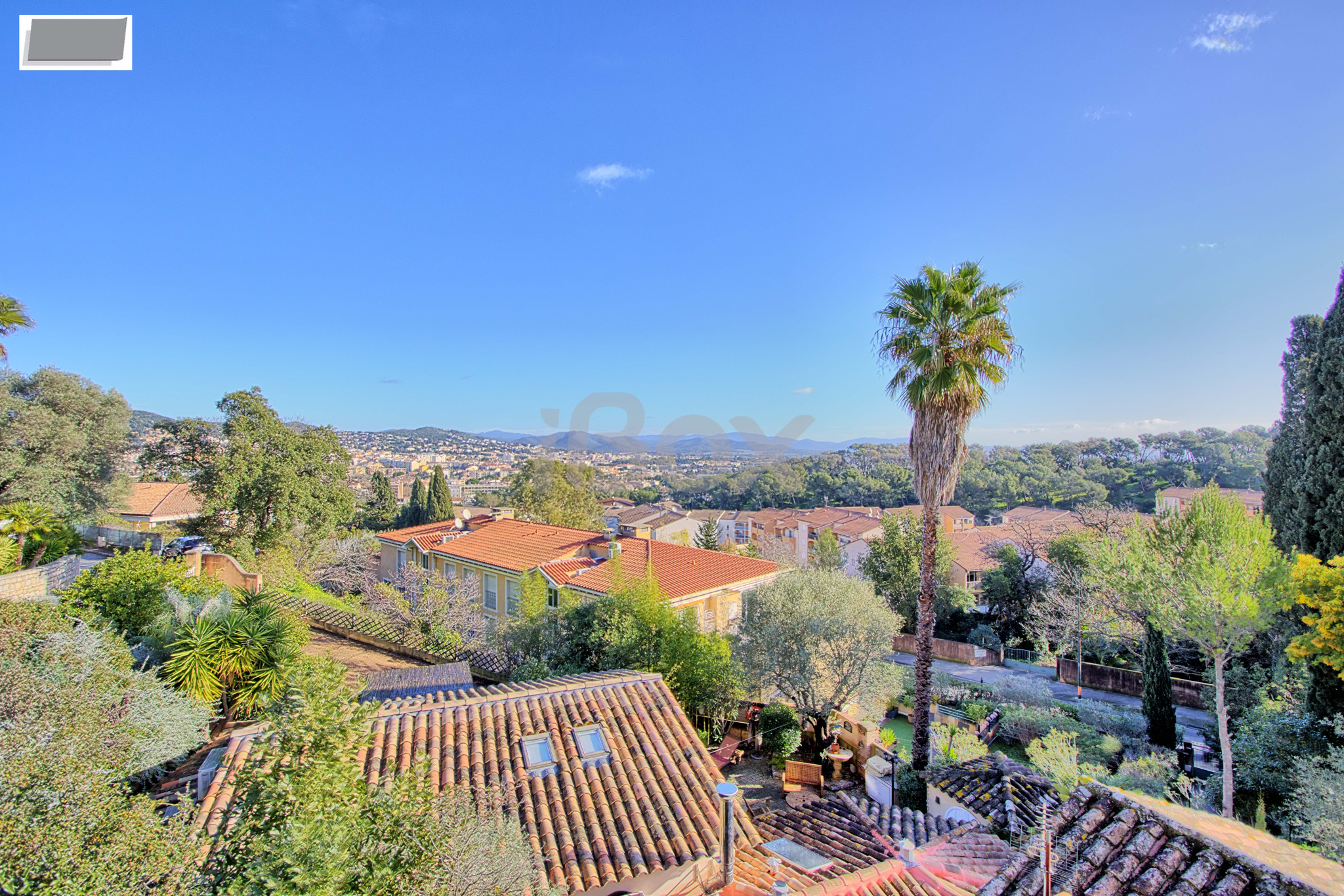 Hyères, au calme, quartier résidentiel du château, à 10 minutes à pied du centre historique, villa d'architecte T6 composé au Rdc d'un salon séjour donnant par des baies vitrées à galandage sur une terrasse avec une magnifique vue dégagée sur Hyères,...