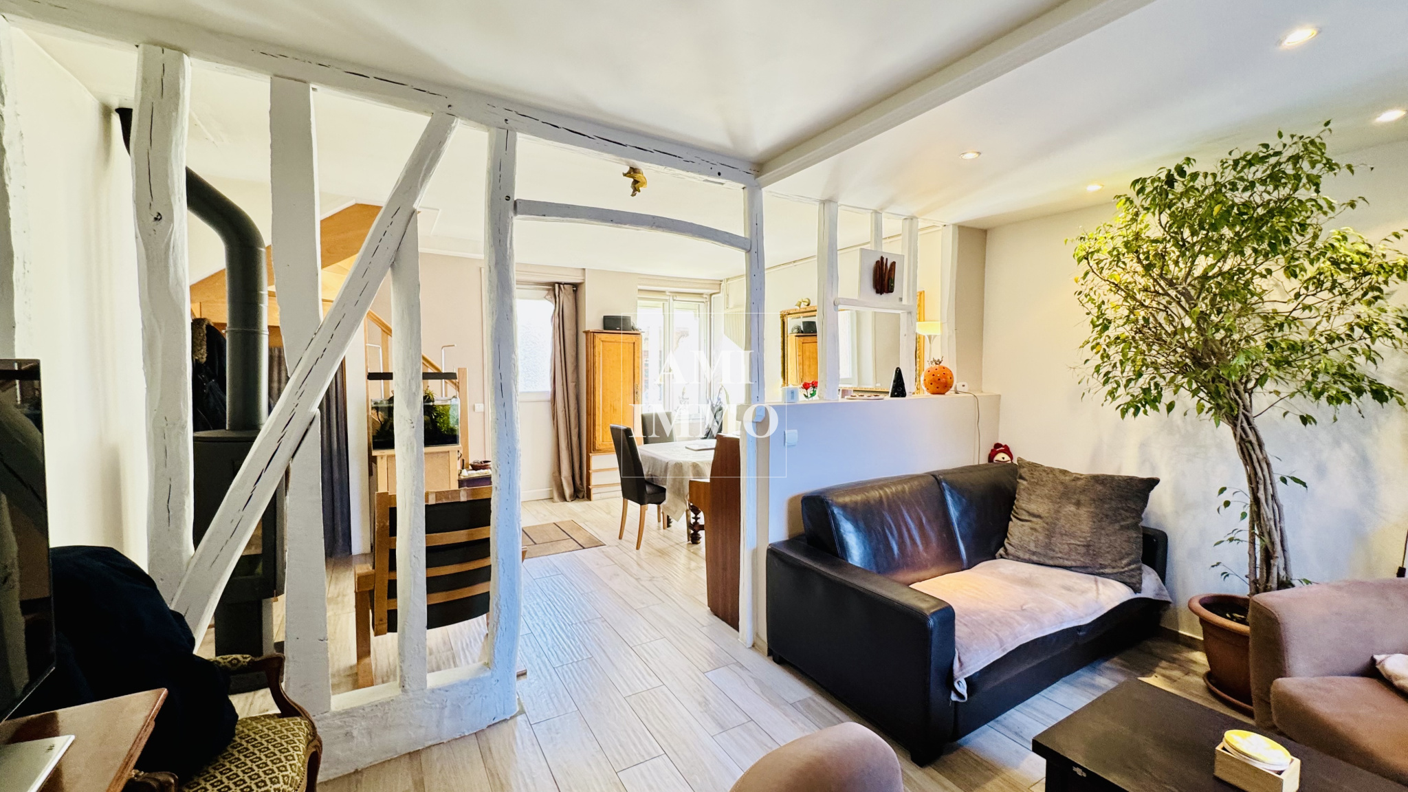 Dès l'entrée, vous serez séduit par un séjour chaleureux avec cheminée, sublimé par de magnifiques poutres apparentes. ...