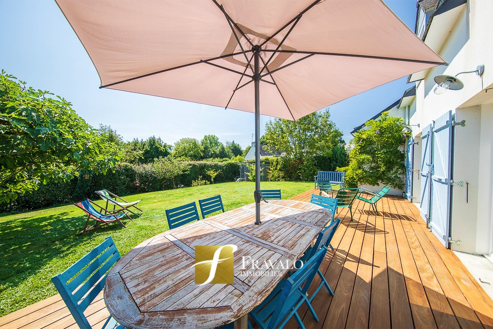 Idéalement située proche du bourg et de la plage de Port-Micquel, spacieuse maison de qualité, offrant de belles prestations, et comprenant: entrée, grand séjour avec cheminée (insert), belle cuisine ouverte aménagée-équipée, suite parentale avec salle d'...