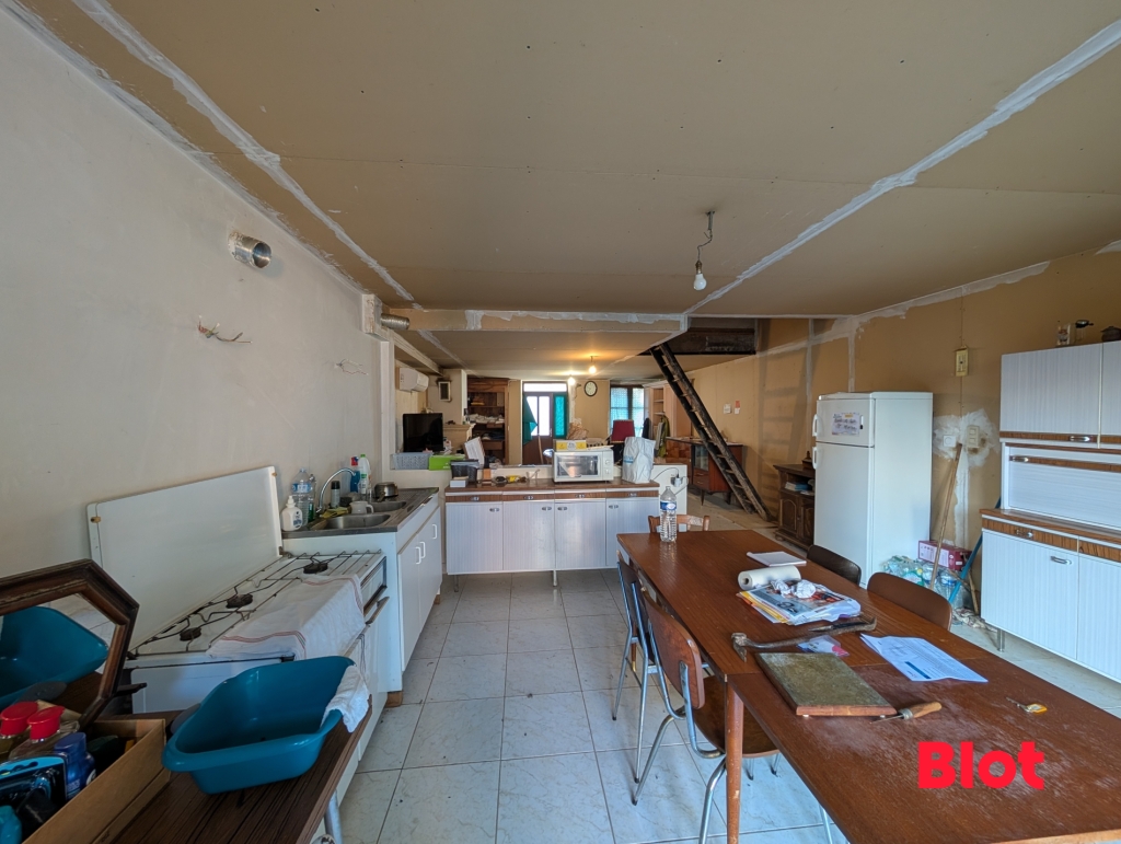 Maison d'habitation de 110 m² avec un bel espace de vie /garage atelier hangar Comprenant au rez de chaussée un espace vie, salon séjour, cuisine, arrière cuisine, deux chambres.