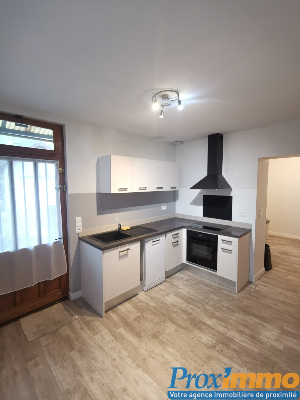 Le bien est composé d'une cuisine ouverte sur pièce de vie, salle d'eau et toilettes. A l'étage 2 grandes chambres avec dressing
