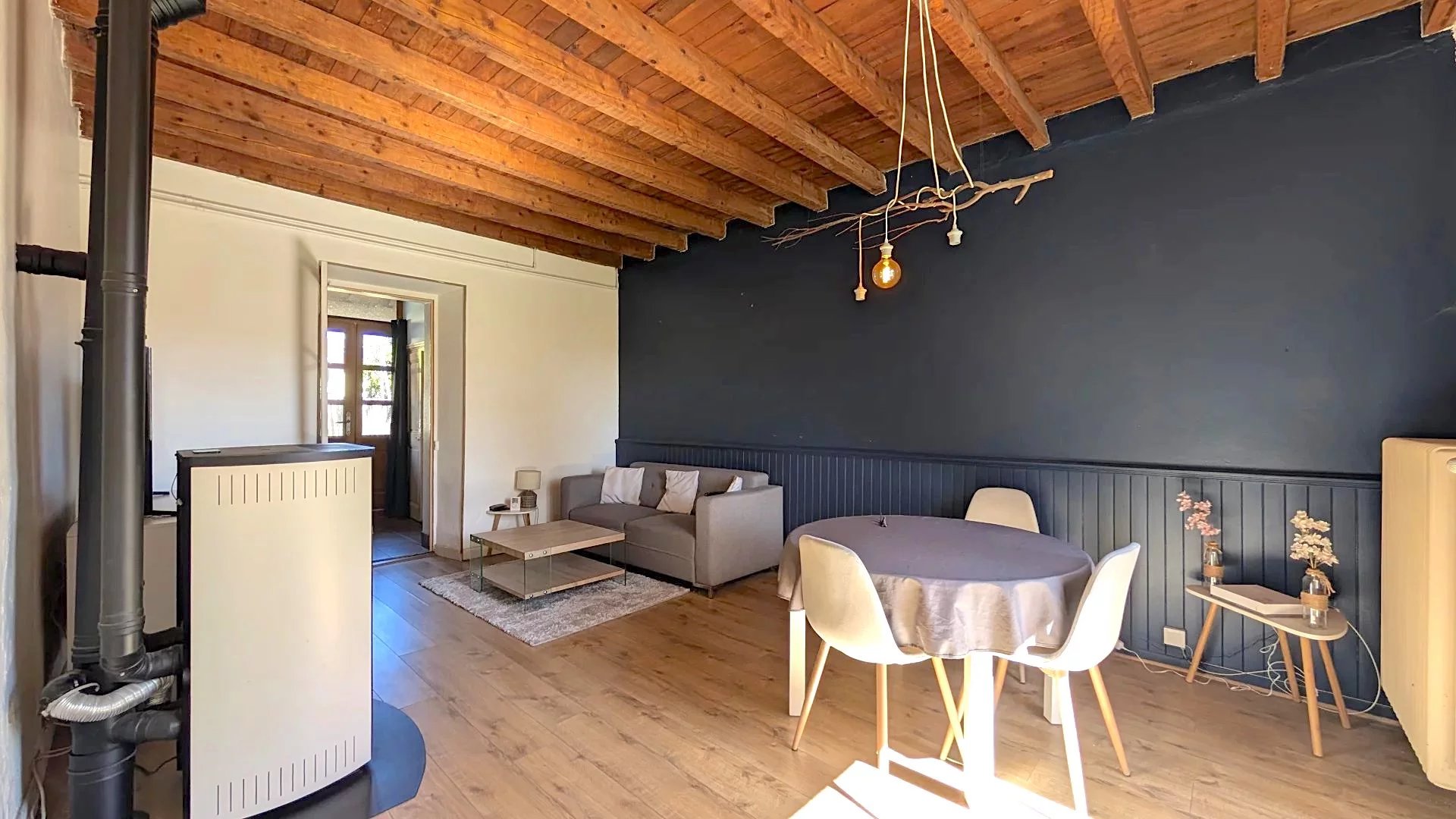 Cuisine équipée récente, salon de 25 m2 avec poêle à...