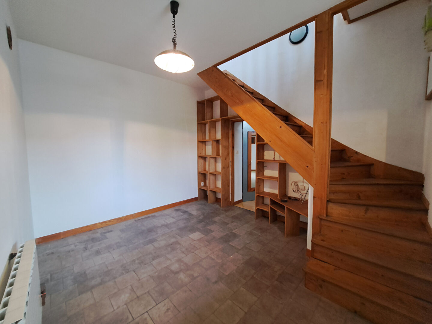 Maison de 3 pièces de 60m2 composée, au rez-de-chaussée, d'une cuisine entièrement aménagée et équipée, ouverte sur le salon et un WC. A l'étage, deux chambres dont une avec placard et une salle d'eau avec WC.