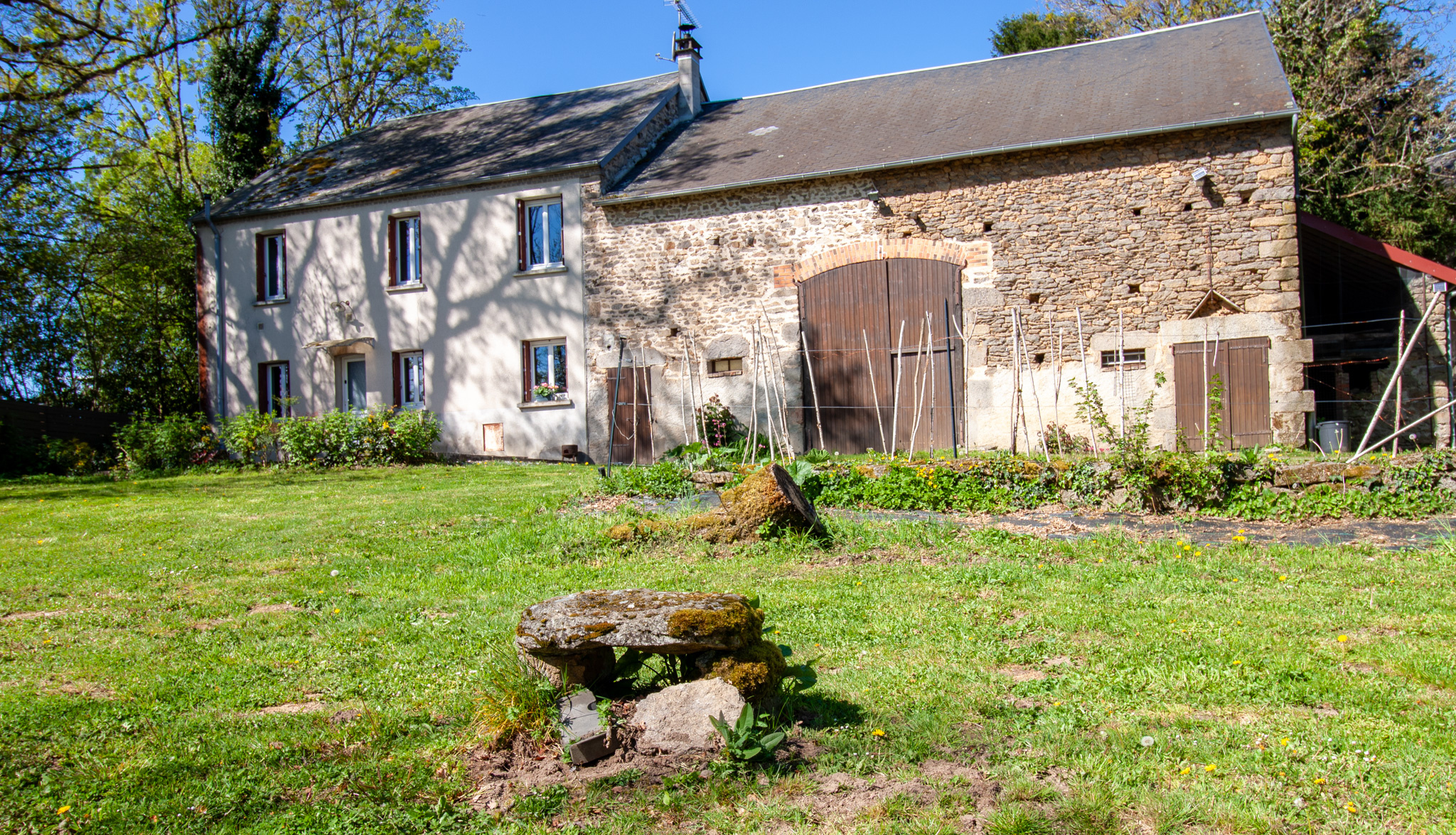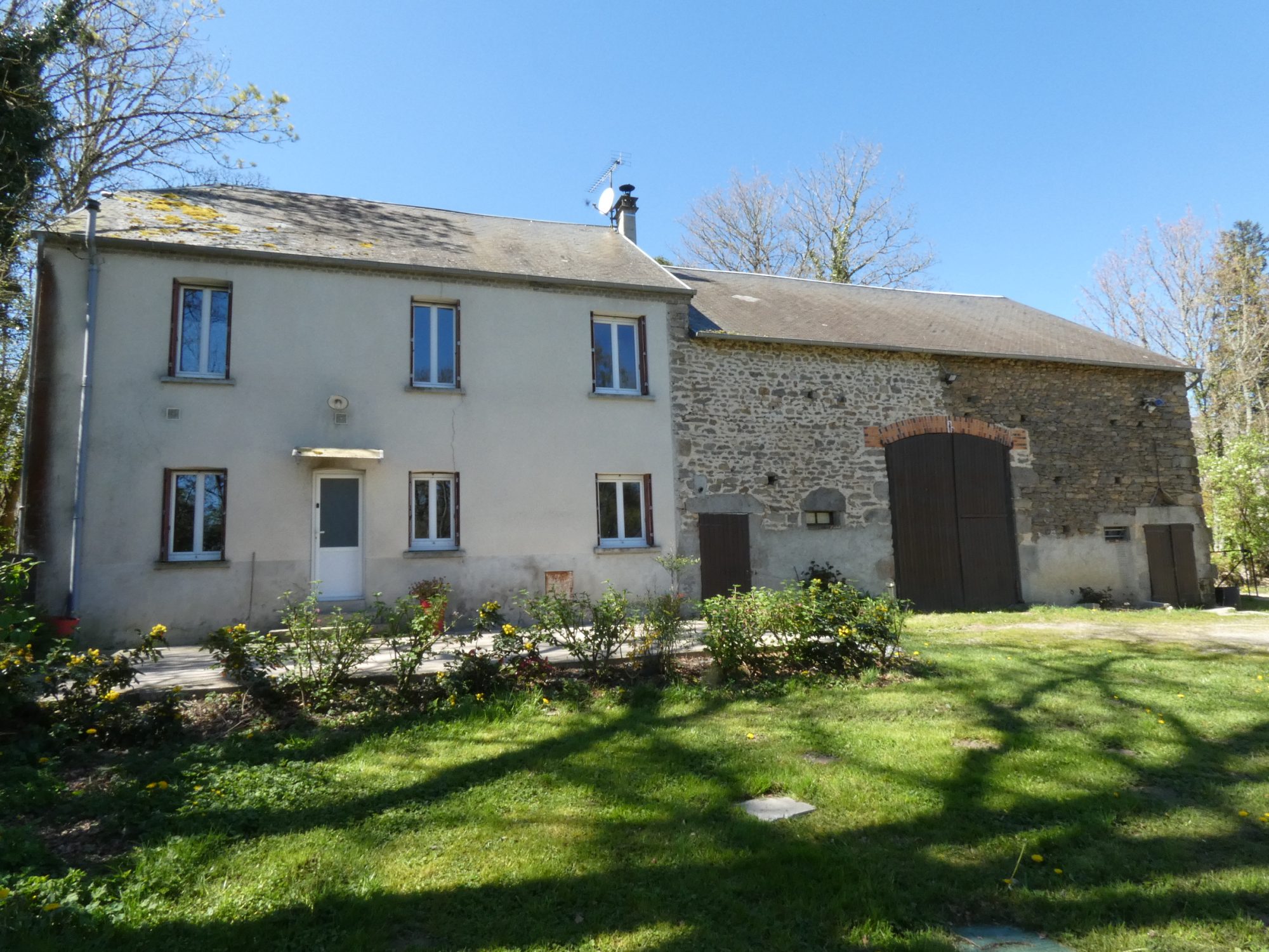 A 5 minutes de JARNAGES, 10 minutes d'AHUN et 25 minutes de GUERET, une belle longère en pierres, couverte en ardoises, sur un terrain de presque 5.000m².