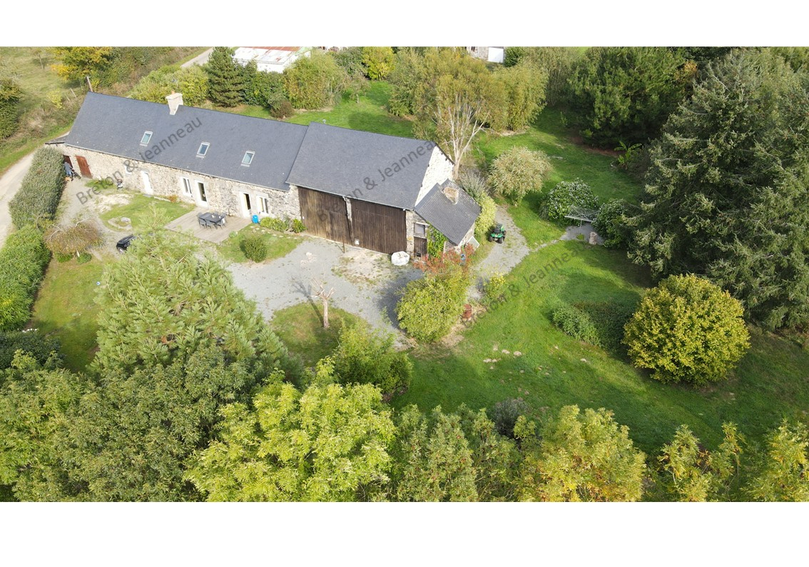 Magnifique propriété composée d'une longère en pierre avec grand terrain arboré et ses dépendances.