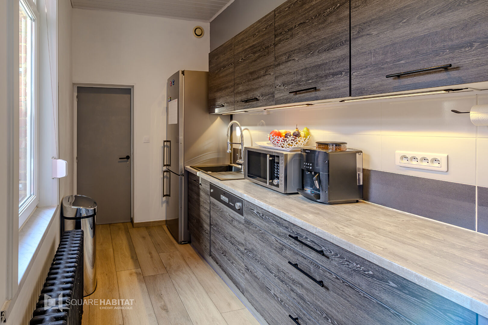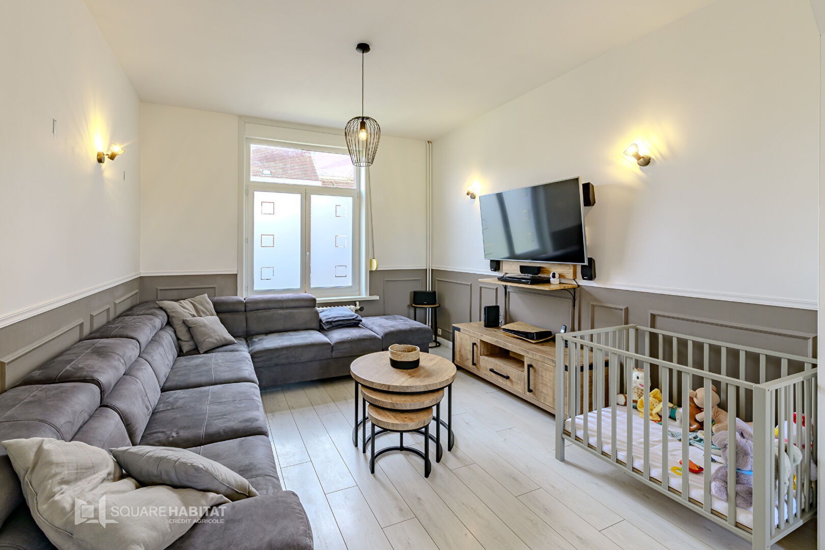 Tigre immobilier Jeumont (Bastien Dusenne 0629505590 ou 0327582626) vous propose : Grande maison bourgeoisse semi-individuelle en brique, comprenant au rez-de-chaussée : bel ensemble salon-séjour moderne, ouvert sur la cuisine équipée, salle de bains, chambre ...