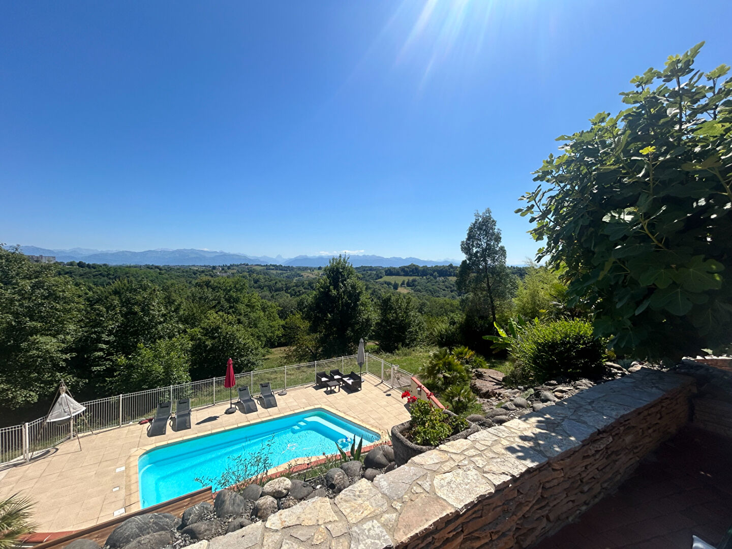 En position dominante sur les coteaux sud de Jurançon, cette villa meublée de 240 m² construite en 2005 offre un cadre de vie exceptionnel en pleine nature, avec une vue panoramique sur la chaîne des Pyrénées.