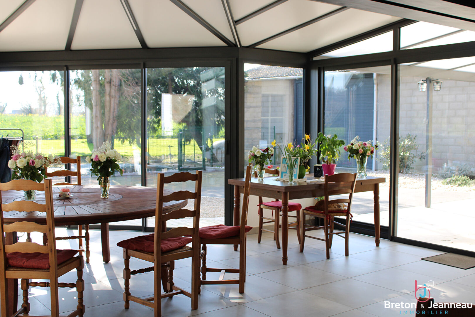 La maison d'habitation, d'une superficie d'environ 150 m², comprend au rez-de-chaussée : une cuisine ouverte sur un salon-séjour avec vé...