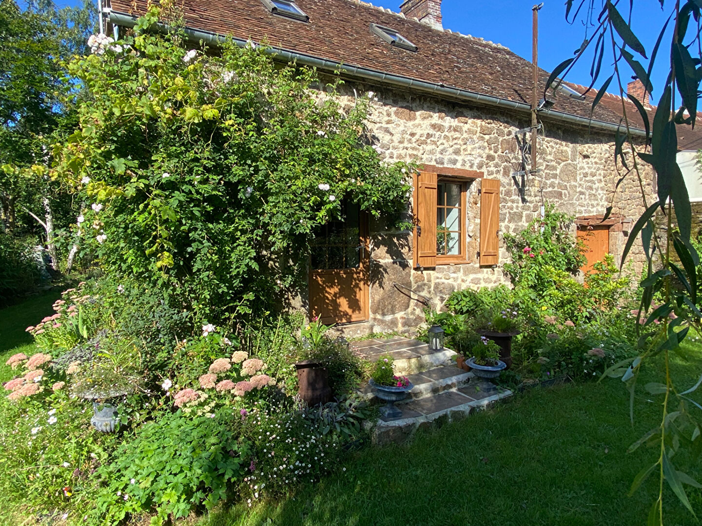 A JUVIGNY SOUS ANDAINE : maison d'habitation en pierre , de bon confort, très lumineuse , comprenant une cuisine équipée, salle, 4 chambres, 1 bureau, 2 SDB, 3 WC. Jolie terrasse sud.