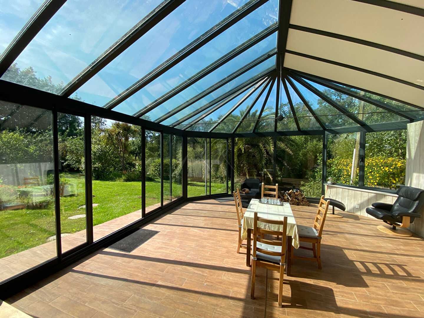 Magnifique ensemble de deux longères en pierres apparentes, niché dans un cadre résidentiel et verdoyant, à seulement 3 minutes du centre ville de Lesneven, dans la commune de Kernouës.