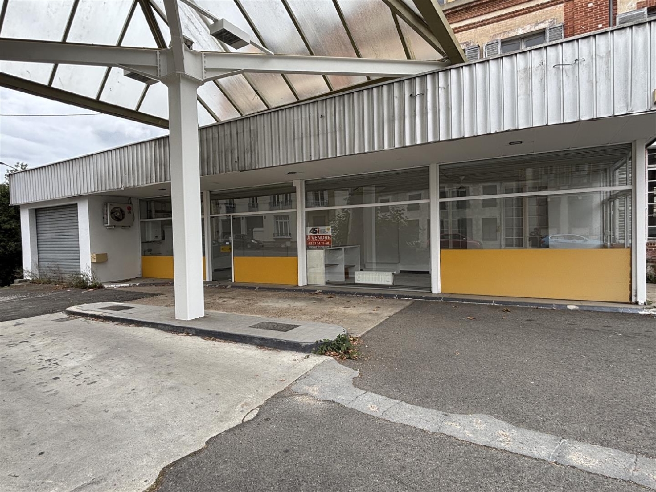 Parking devant la surface vitrée.